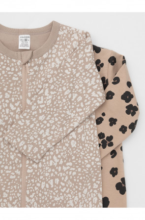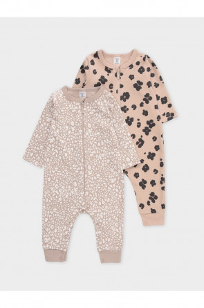 Комбинезоны для новорождённых из эластичного трикотажа, произведённого из натурального хлопка. В упаковке 2 штуки. Застёгиваются спереди на молнию с мягкой защитой шеи и подбородка. По шаговому шву застёжка на кнопки. Оригинальная набивка выполнена из стойких гипоаллергенных текстильных красителей. Все трикотажные полотна производятся в соответствии с нормами швейцарского сертификата ЭкоТекс.