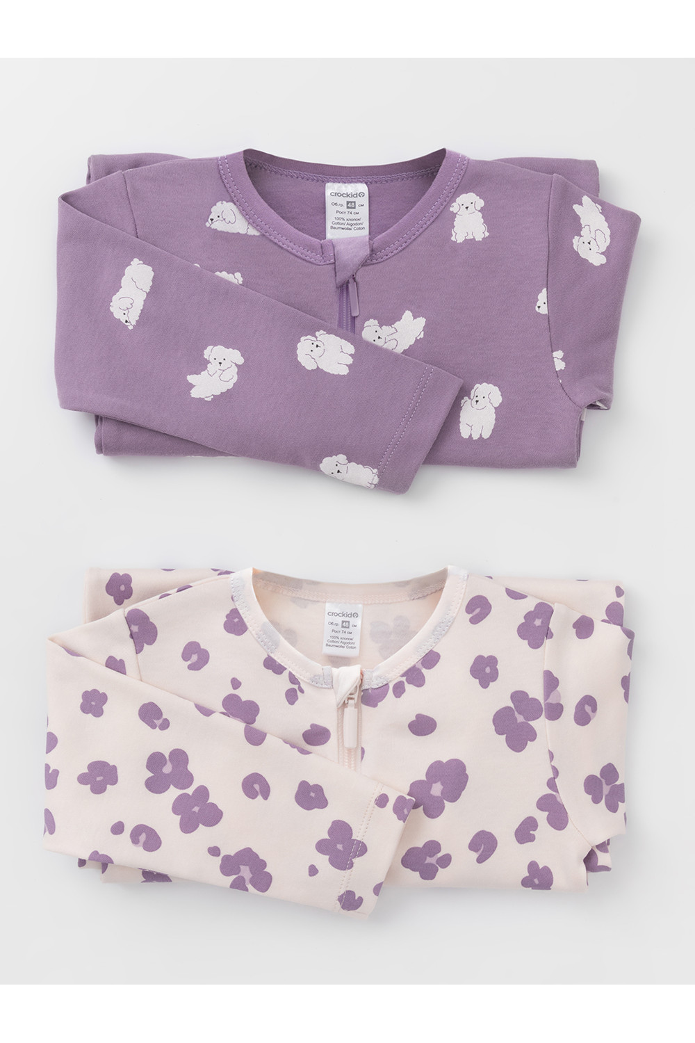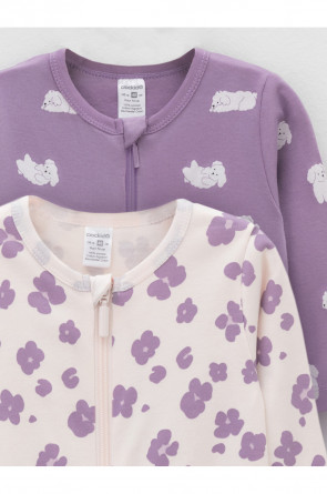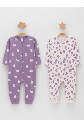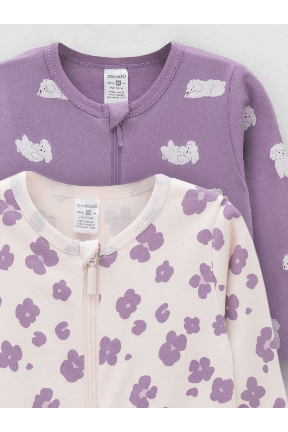 Комбинезоны для новорождённых из эластичного трикотажа, произведённого из натурального хлопка. В упаковке 2 штуки. Застёгиваются спереди на молнию с мягкой защитой шеи и подбородка. По шаговому шву застёжка на кнопки. Оригинальная набивка выполнена из стойких гипоаллергенных текстильных красителей. Все трикотажные полотна производятся в соответствии с нормами швейцарского сертификата ЭкоТекс.