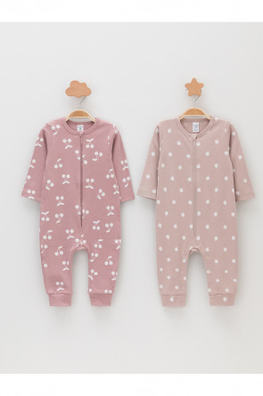 Комбинезоны для новорождённых из эластичного трикотажа, произведённого из натурального хлопка. В упаковке 2 штуки. Застёгиваются спереди на молнию с мягкой защитой шеи и подбородка. По шаговому шву застёжка на кнопки. Оригинальная набивка выполнена из стойких гипоаллергенных текстильных красителей. Все трикотажные полотна производятся в соответствии с нормами швейцарского сертификата ЭкоТекс.