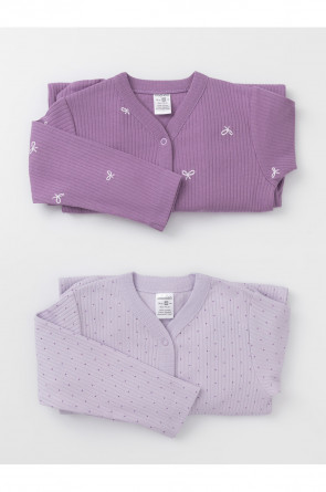 Комбинезоны для новорождённых из мягкого эластичного трикотажа, произведённого из натурального хлопка. В упаковке 2 штуки. Застёгиваются спереди на кнопки. В размере 56 на рукавах предусмотрены антицарапки, швы выполнены наружу. Все трикотажные полотна производятся в соответствии с нормами швейцарского сертификата ЭкоТекс.