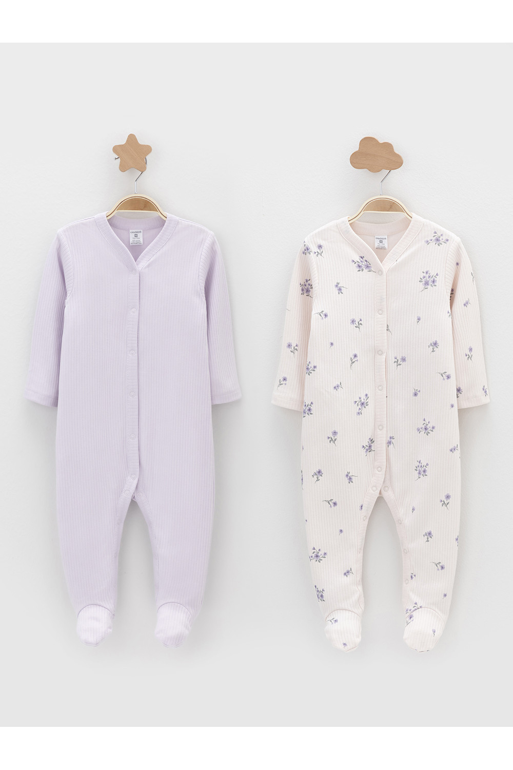 Комбинезоны для новорождённых из мягкого эластичного трикотажа, произведённого из натурального хлопка. В упаковке 2 штуки. Застёгиваются спереди на кнопки. В размере 56 на рукавах предусмотрены антицарапки, швы выполнены наружу. Все трикотажные полотна производятся в соответствии с нормами швейцарского сертификата ЭкоТекс.