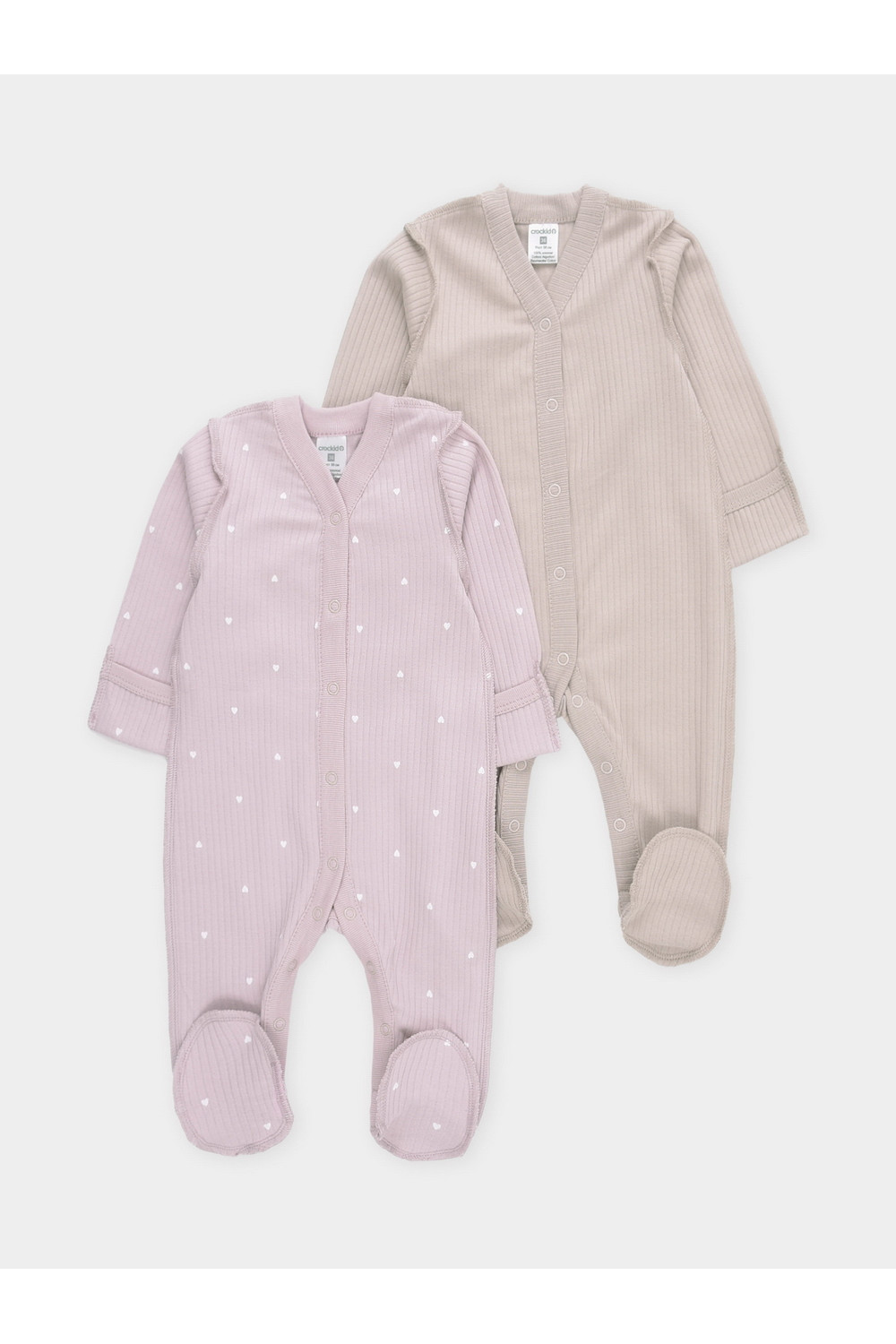 Комбинезоны для новорождённых из мягкого эластичного трикотажа, произведённого из натурального хлопка. В упаковке 2 штуки. Застёгиваются спереди на кнопки. В размере 56 на рукавах предусмотрены антицарапки, швы выполнены наружу. Все трикотажные полотна производятся в соответствии с нормами швейцарского сертификата ЭкоТекс.