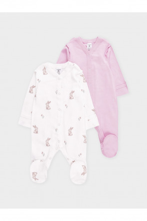 Комбинезоны для новорождённых из мягкого эластичного трикотажа, произведённого из натурального хлопка. В упаковке 2 штуки. Застёгиваются спереди на кнопки. В размере 56 на рукавах предусмотрены антицарапки, швы выполнены наружу. Все трикотажные полотна производятся в соответствии с нормами швейцарского сертификата ЭкоТекс.