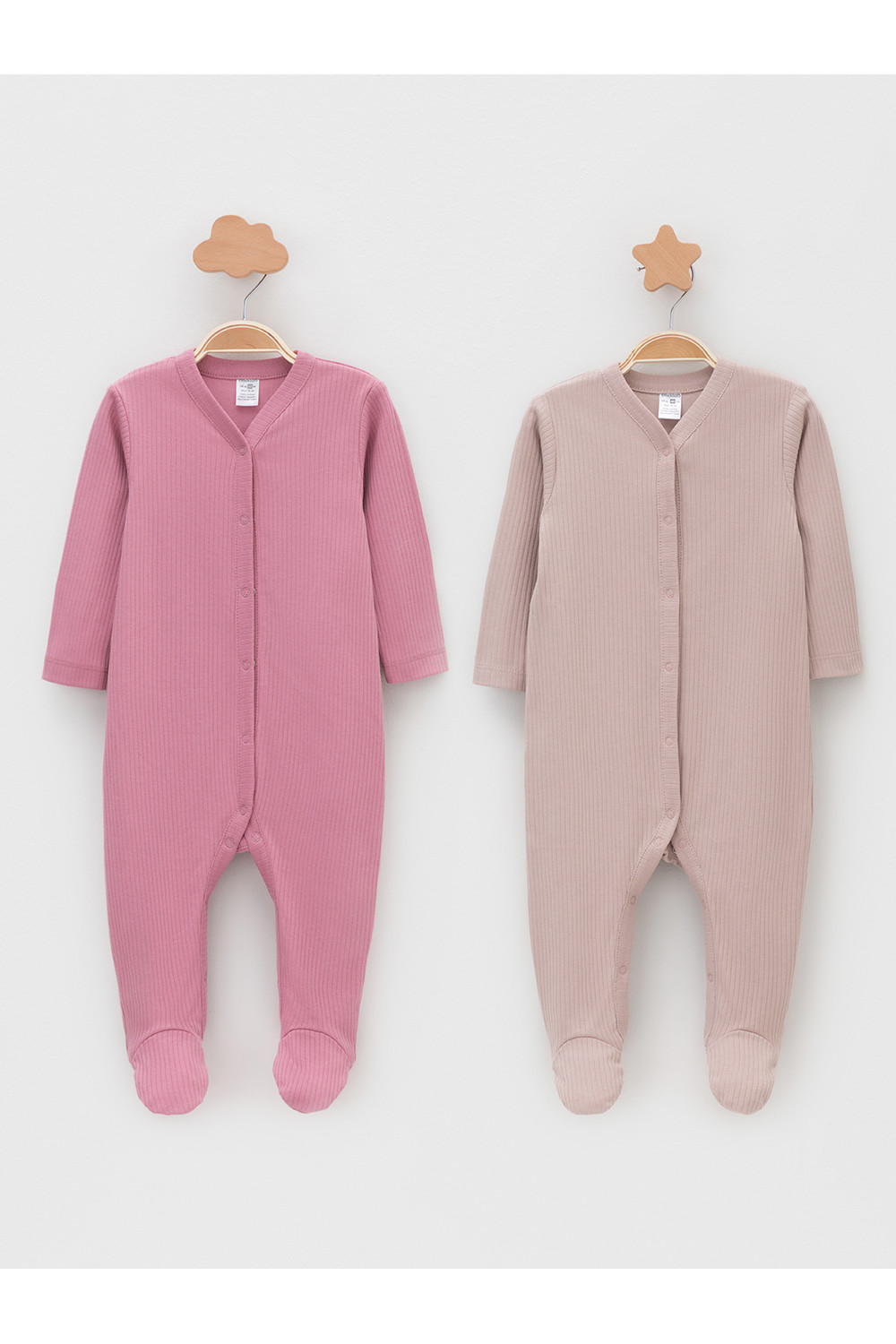 Комбинезоны для новорождённых из мягкого эластичного трикотажа, произведённого из натурального хлопка. В упаковке 2 штуки. Застёгиваются спереди на кнопки. В размере 56 на рукавах предусмотрены антицарапки, швы выполнены наружу. Все трикотажные полотна производятся в соответствии с нормами швейцарского сертификата ЭкоТекс.