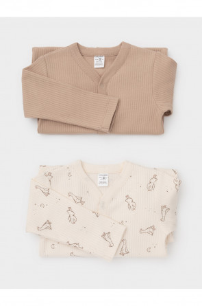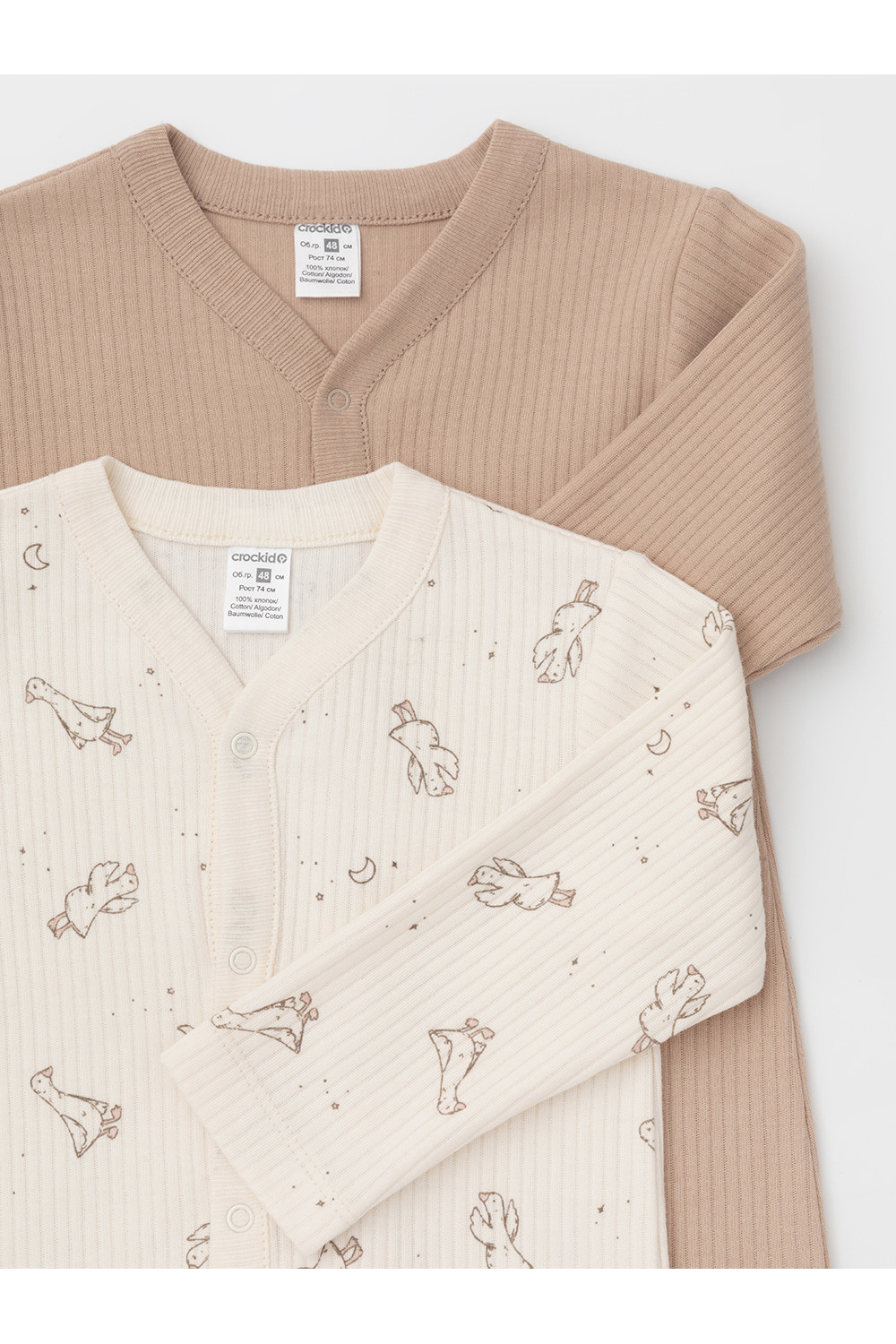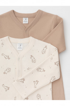 Комбинезоны для новорождённых из мягкого эластичного трикотажа, произведённого из натурального хлопка. В упаковке 2 штуки. Застёгиваются спереди на кнопки. Оригинальная набивка выполнена из стойких гипоаллергенных текстильных красителей. Все трикотажные полотна производятся в соответствии с нормами швейцарского сертификата ЭкоТекс.