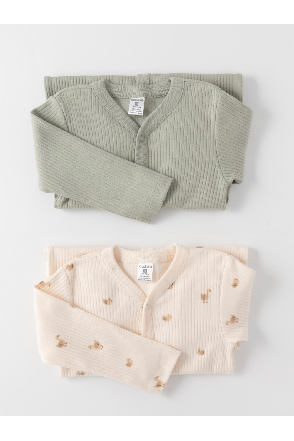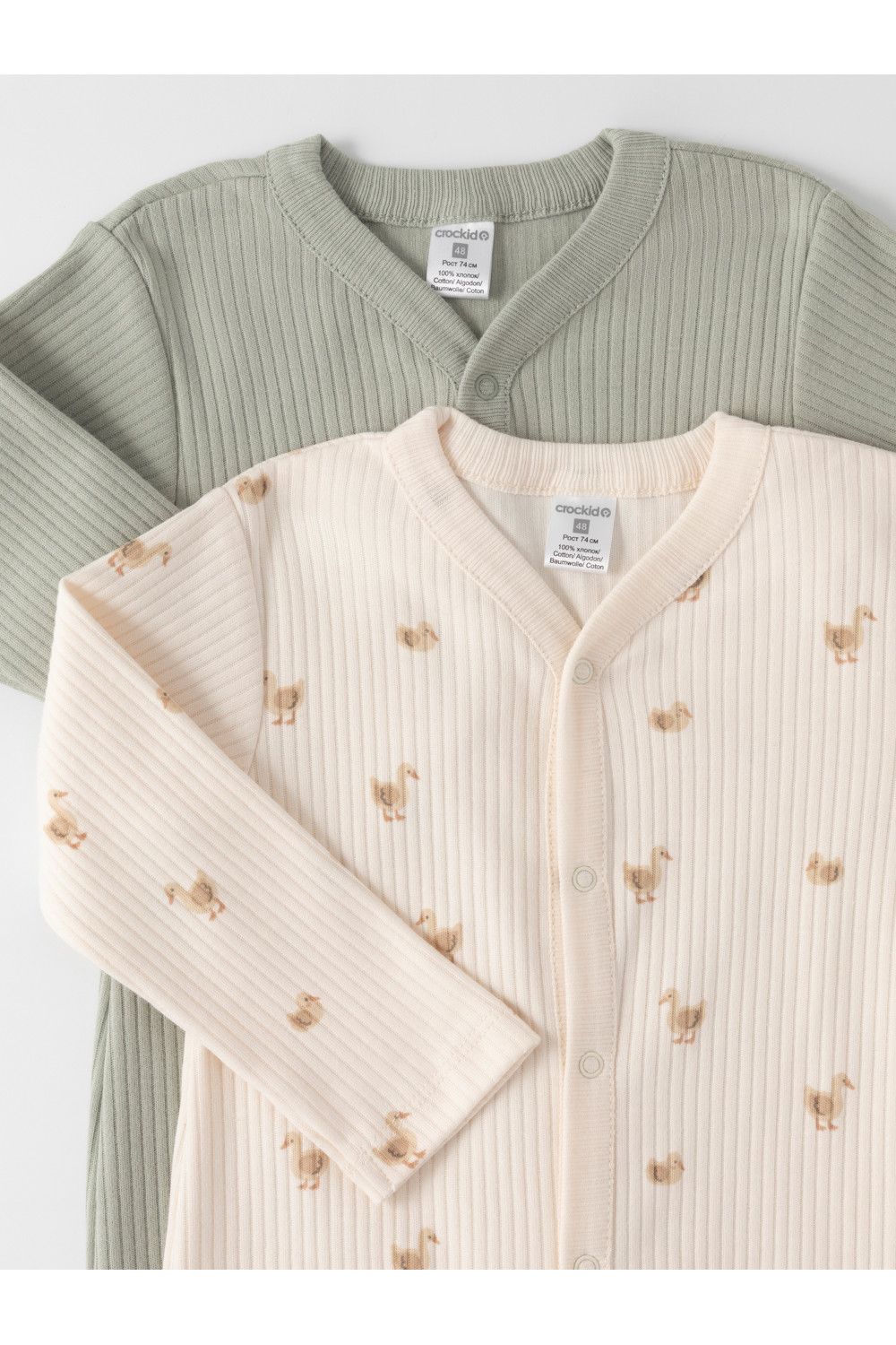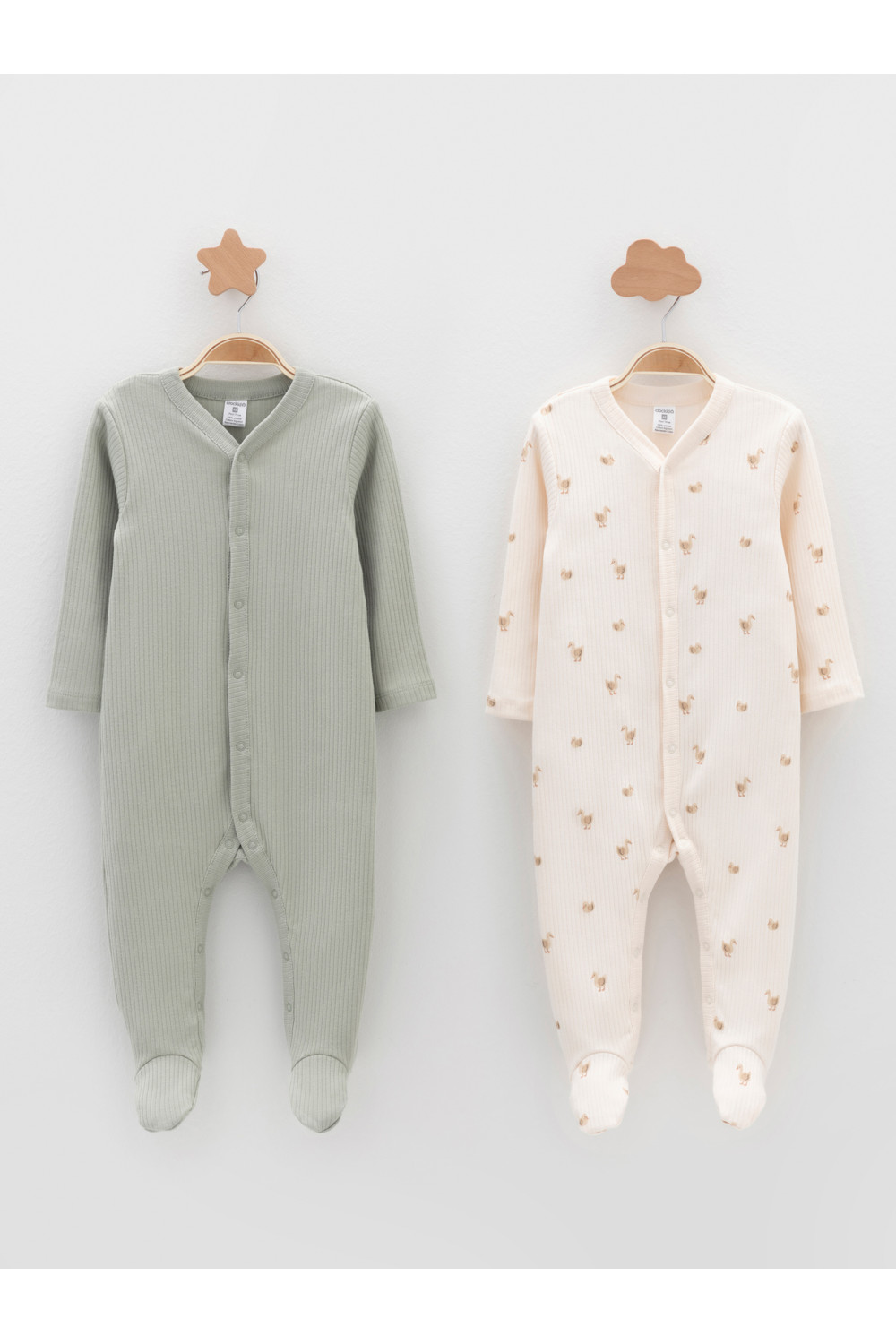Комбинезоны для новорождённых из мягкого эластичного трикотажа, произведённого из натурального хлопка. В упаковке 2 штуки. Застёгиваются спереди на кнопки. Все трикотажные полотна производятся в соответствии с нормами швейцарского сертификата ЭкоТекс.