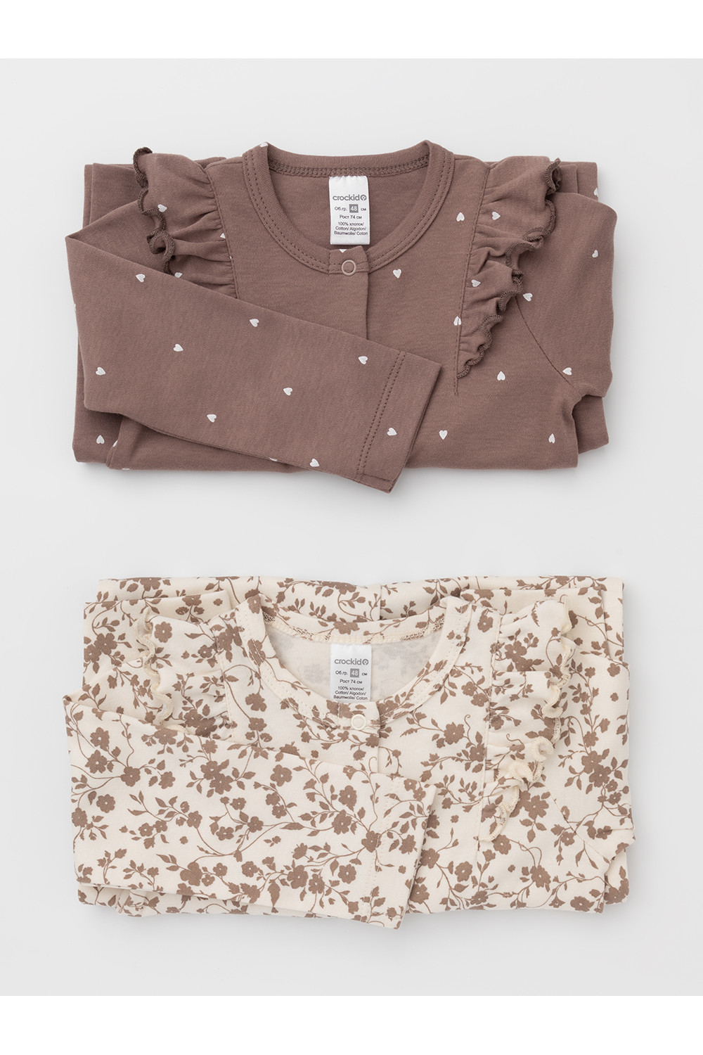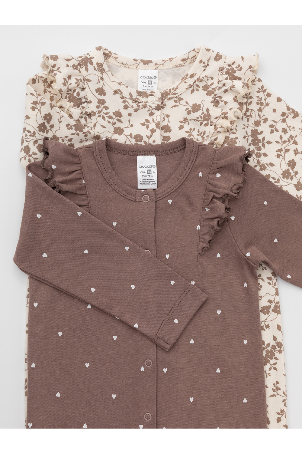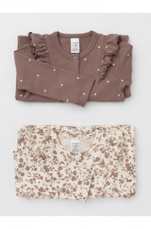 Комбинезоны для новорождённых из мягкого эластичного трикотажа, произведённого из натурального хлопка. В упаковке 2 штуки. Застёгиваются спереди на кнопки. Украшены воздушными крылышками. Оригинальная набивка выполнена из стойких гипоаллергенных текстильных красителей. Все трикотажные полотна производятся в соответствии с нормами швейцарского сертификата ЭкоТекс.