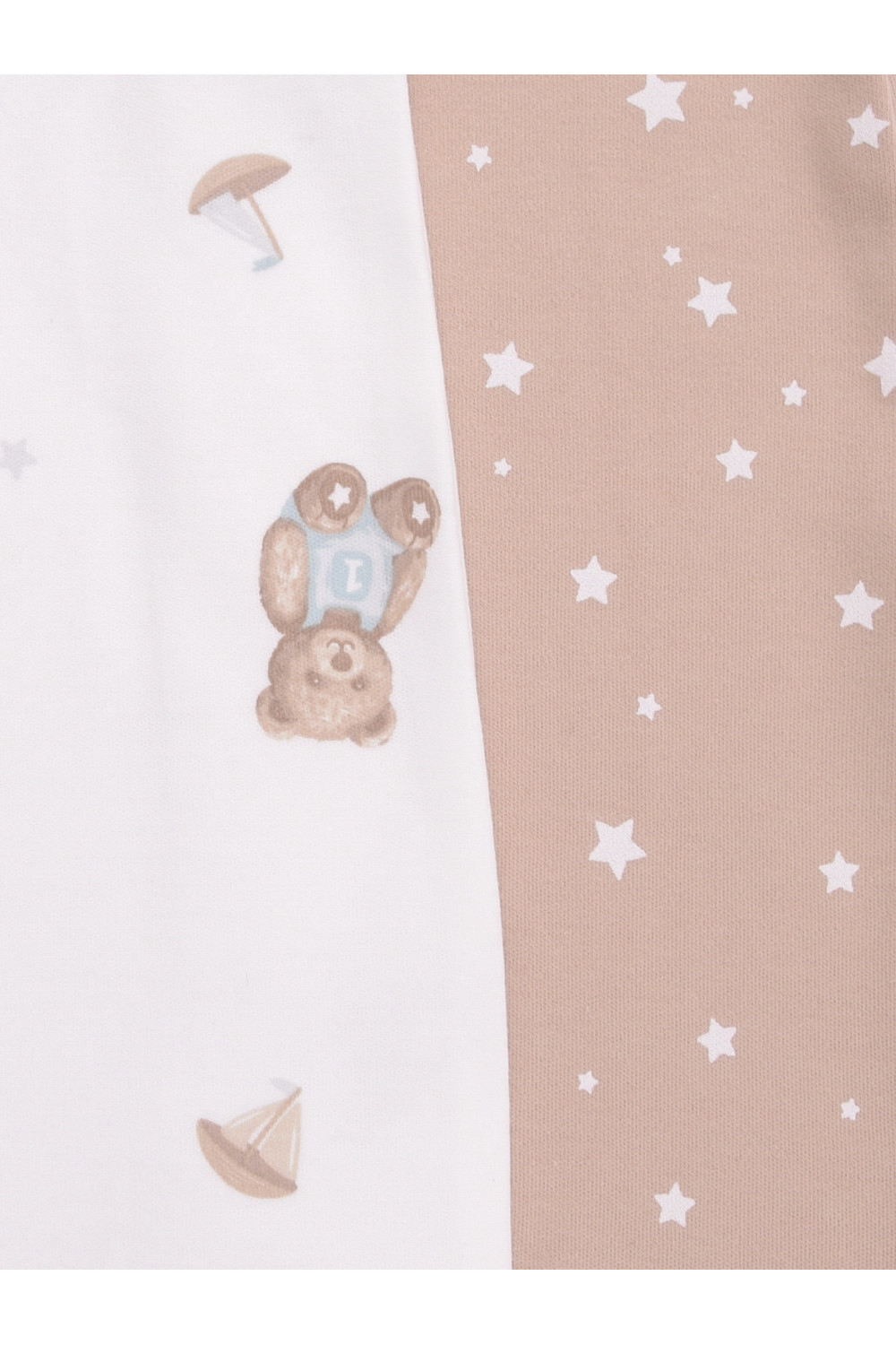 Комбинезоны для новорождённых из мягкого эластичного трикотажа, произведённого из натурального хлопка. В упаковке 2 штуки. Застёгиваются спереди на кнопки. Оригинальная набивка выполнена из стойких гипоаллергенных текстильных красителей. Все трикотажные полотна производятся в соответствии с нормами швейцарского сертификата ЭкоТекс.