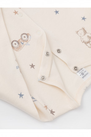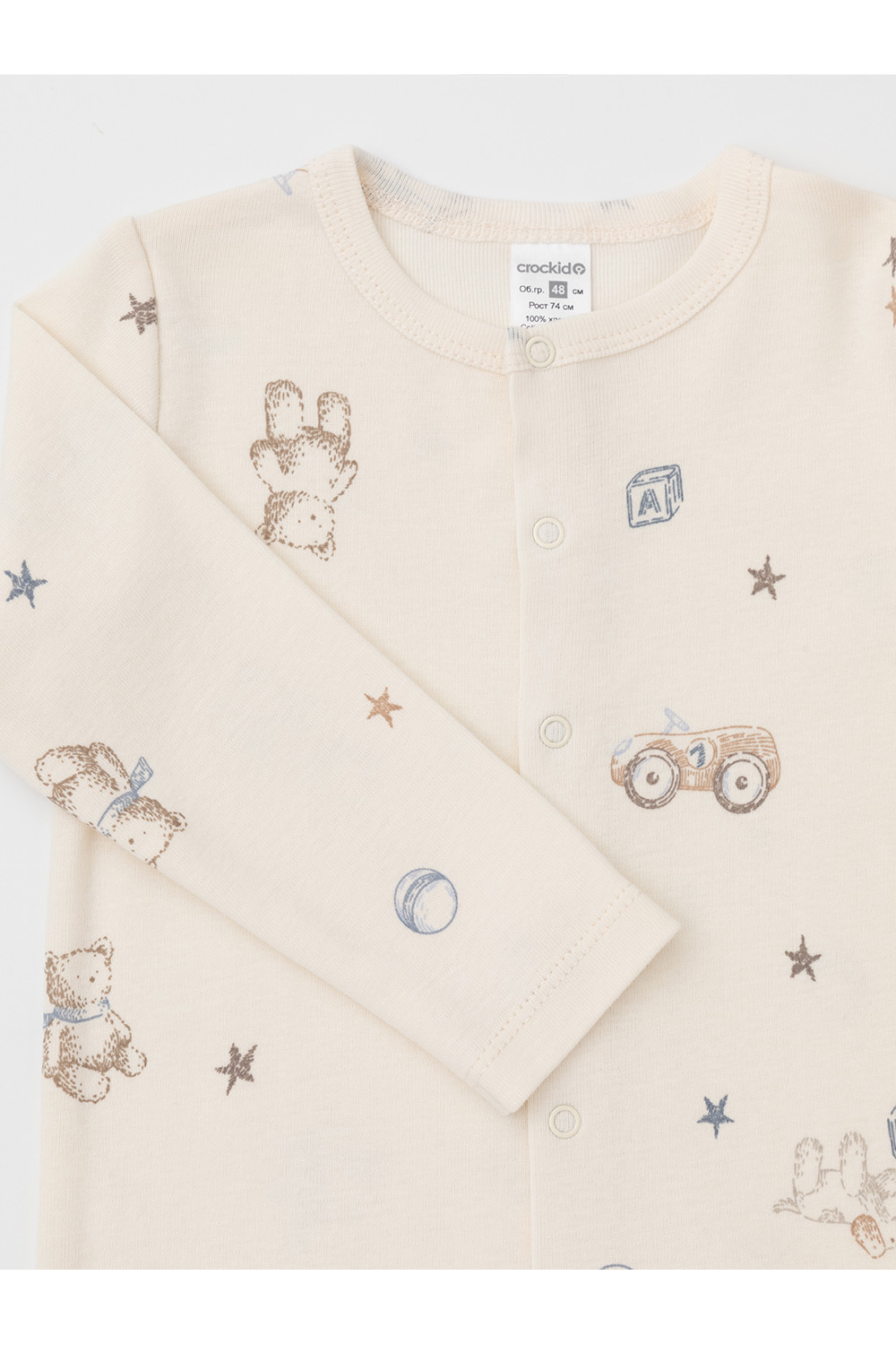 Комбинезоны для новорождённых из мягкого эластичного трикотажа, произведённого из натурального хлопка. В упаковке 2 штуки. Застёгиваются спереди на кнопки. Оригинальная набивка выполнена из стойких гипоаллергенных текстильных красителей. Все трикотажные полотна производятся в соответствии с нормами швейцарского сертификата ЭкоТекс.