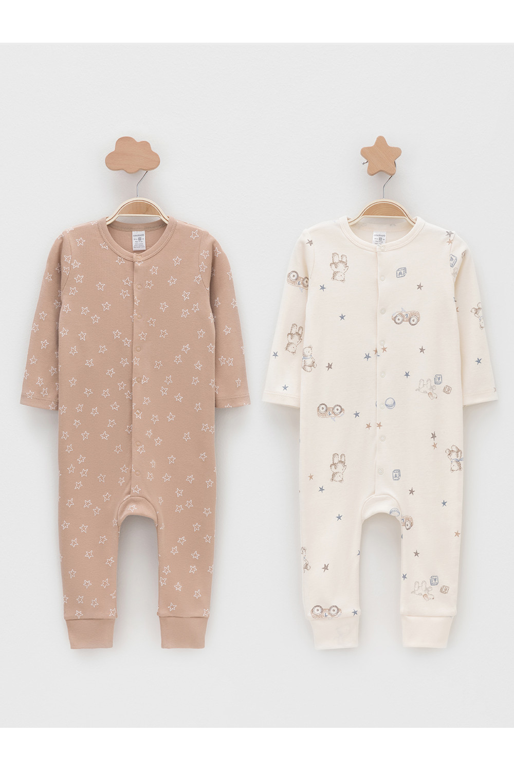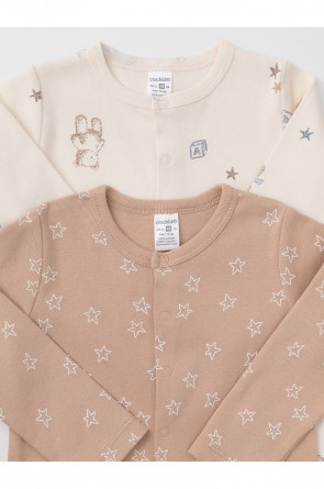 Комбинезоны для новорождённых из мягкого эластичного трикотажа, произведённого из натурального хлопка. В упаковке 2 штуки. Застёгиваются спереди на кнопки. Оригинальная набивка выполнена из стойких гипоаллергенных текстильных красителей. Все трикотажные полотна производятся в соответствии с нормами швейцарского сертификата ЭкоТекс.