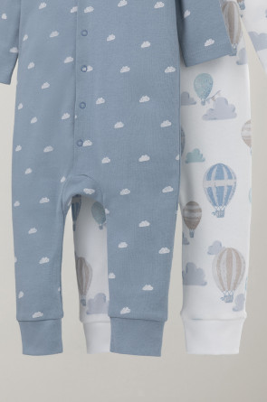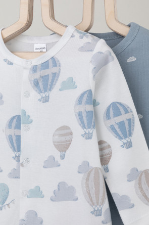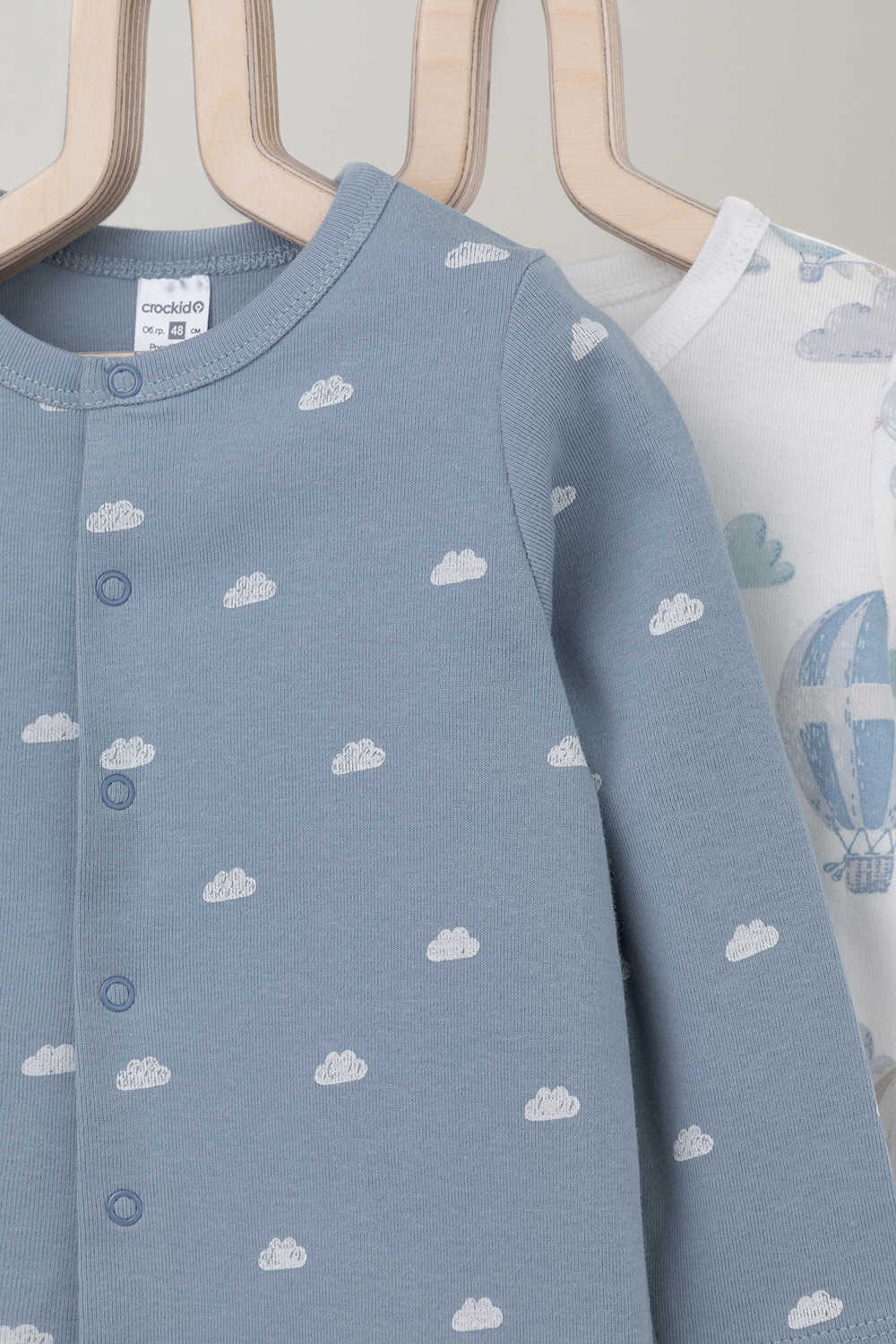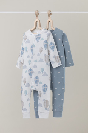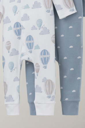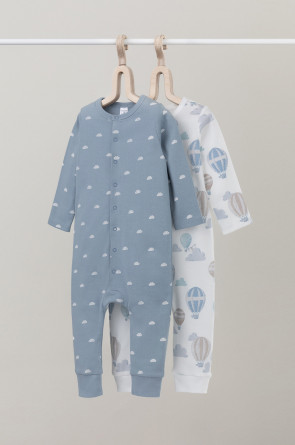 Комбинезоны для новорождённых из мягкого эластичного трикотажа, произведённого из натурального хлопка. В упаковке 2 штуки. Застёгиваются спереди на кнопки. Оригинальная набивка выполнена из стойких гипоаллергенных текстильных красителей. Все трикотажные полотна производятся в соответствии с нормами Швейцарского сертификата ЭкоТекс.