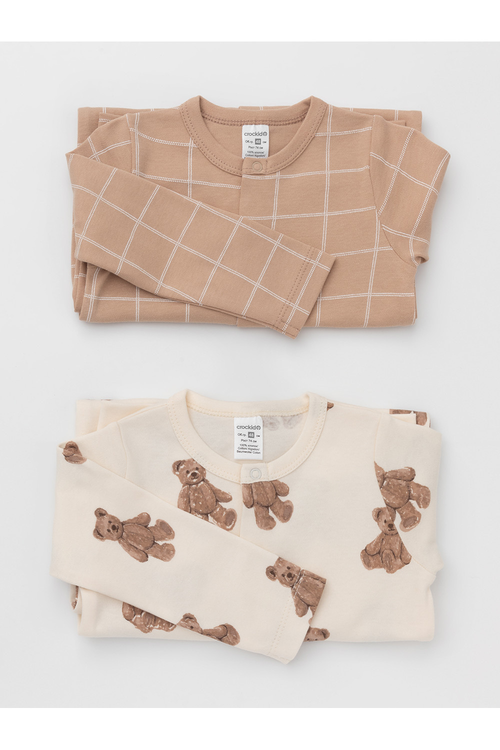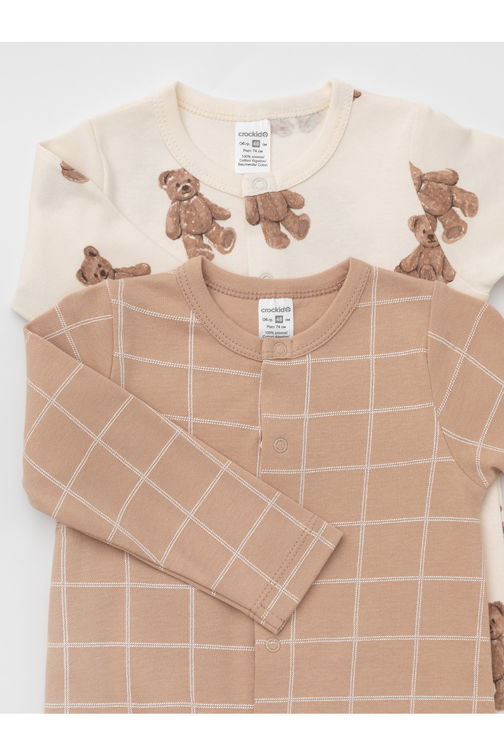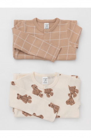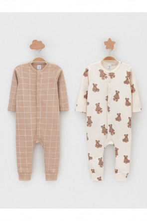 Комбинезоны для новорождённых из мягкого эластичного трикотажа, произведённого из натурального хлопка. В упаковке 2 штуки. Застёгиваются спереди на кнопки. Оригинальная набивка выполнена из стойких гипоаллергенных текстильных красителей. Все трикотажные полотна производятся в соответствии с нормами швейцарского сертификата ЭкоТекс.