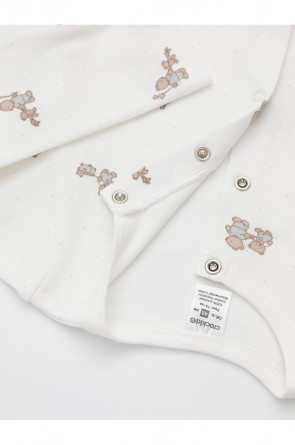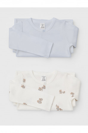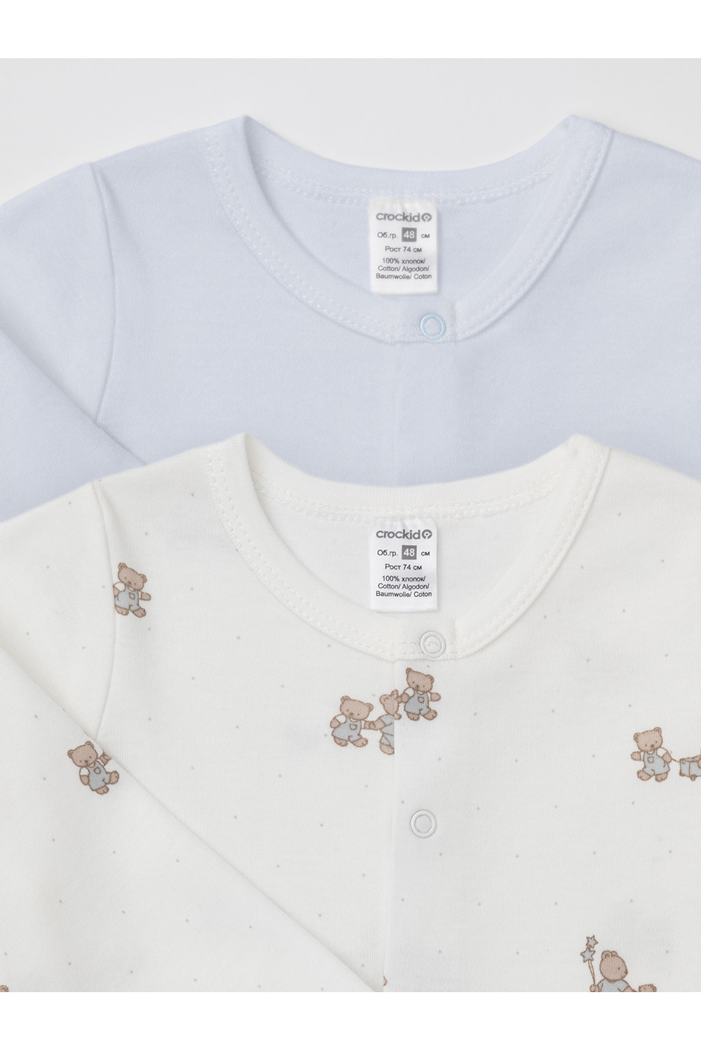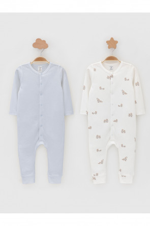 Комбинезоны для новорождённых из мягкого эластичного трикотажа, произведённого из натурального хлопка. В упаковке 2 штуки. Застёгиваются спереди на кнопки. Оригинальная набивка выполнена из стойких гипоаллергенных текстильных красителей. Все трикотажные полотна производятся в соответствии с нормами швейцарского сертификата ЭкоТекс.