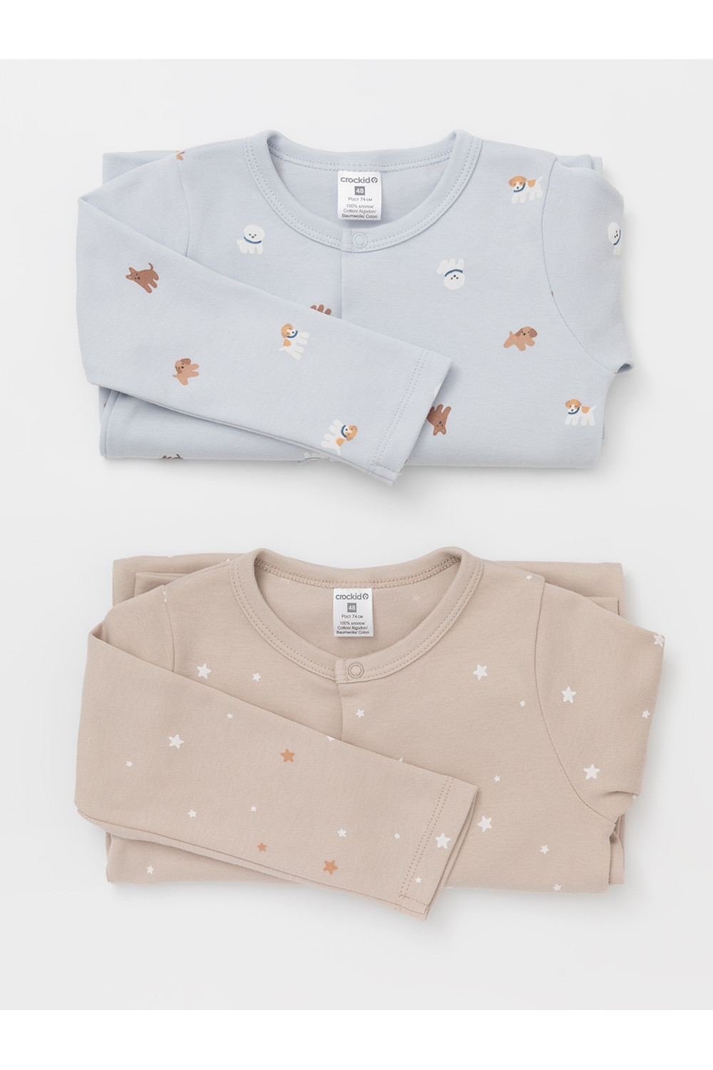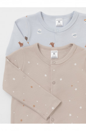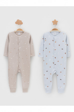 Комбинезоны для новорождённых из мягкого эластичного трикотажа, произведённого из натурального хлопка. В упаковке 2 штуки. Застёгиваются спереди на кнопки. Оригинальная набивка выполнена из стойких гипоаллергенных текстильных красителей. Все трикотажные полотна производятся в соответствии с нормами Швейцарского сертификата ЭкоТекс.
