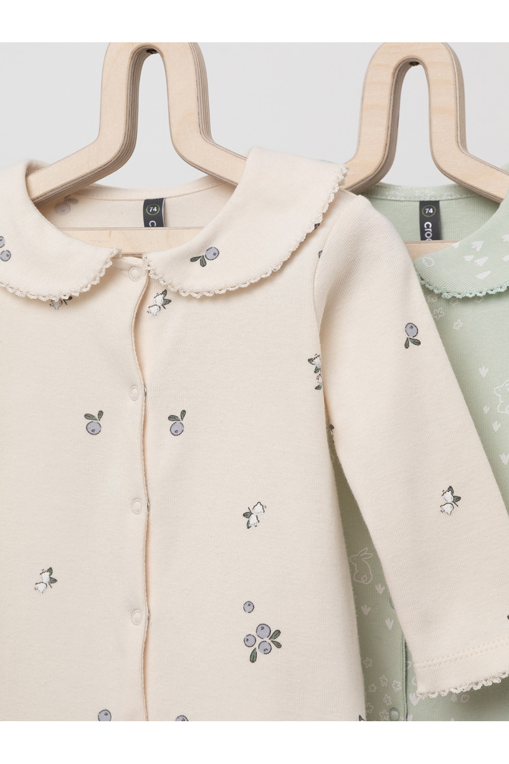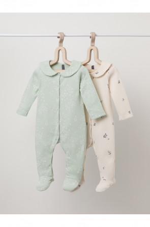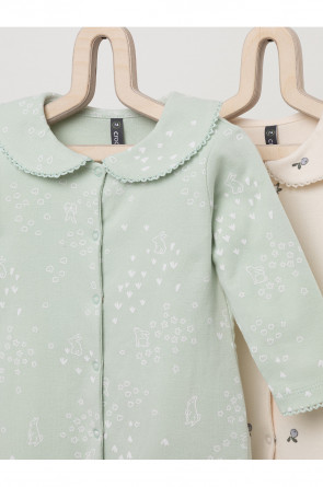 Комбинезоны для новорождённых из мягкого эластичного трикотажа, произведённого из натурального хлопка. В упаковке 2 штуки. Застёгиваются спереди на кнопки. В размере 56 на рукавах предусмотрены антицарапки, швы выполнены наружу. Украшены воротничком. Оригинальная набивка выполнена из стойких гипоаллергенных текстильных красителей. Все трикотажные полотна производятся в соответствии с нормами Швейцарского сертификата ЭкоТекс.