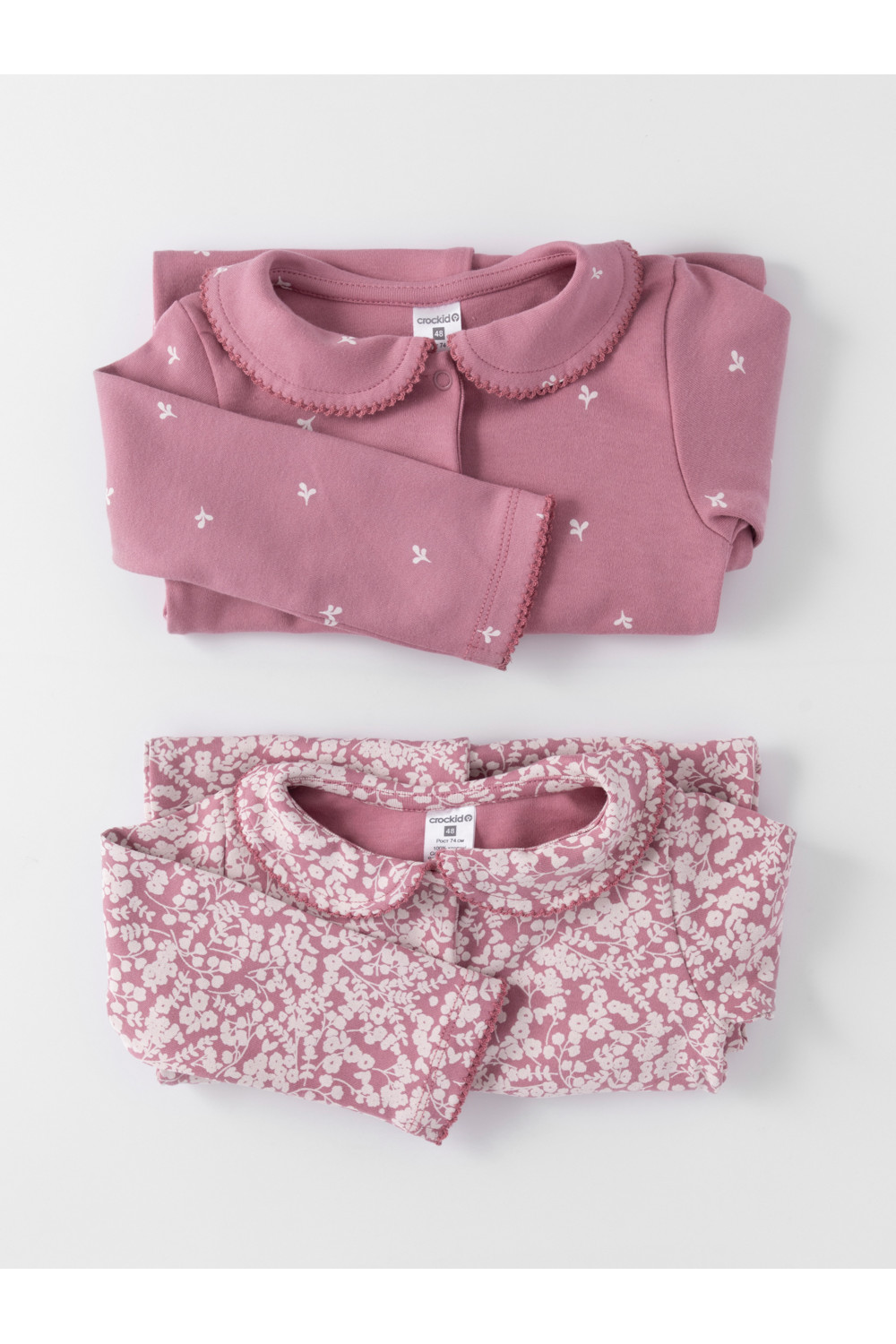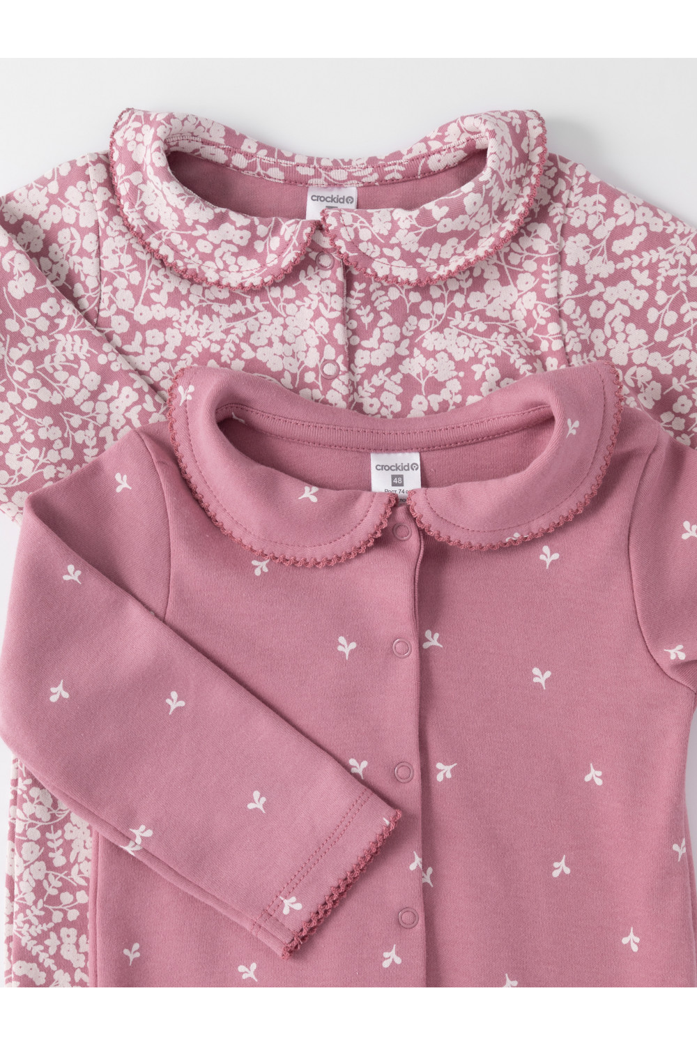 Комбинезоны для новорождённых из мягкого эластичного трикотажа, произведённого из натурального хлопка. В упаковке 2 штуки. Застёгиваются спереди на кнопки. В размере 56 на рукавах предусмотрены антицарапки, швы выполнены наружу. Украшены воротничком. Оригинальная набивка выполнена из стойких гипоаллергенных текстильных красителей. Все трикотажные полотна производятся в соответствии с нормами швейцарского сертификата ЭкоТекс.