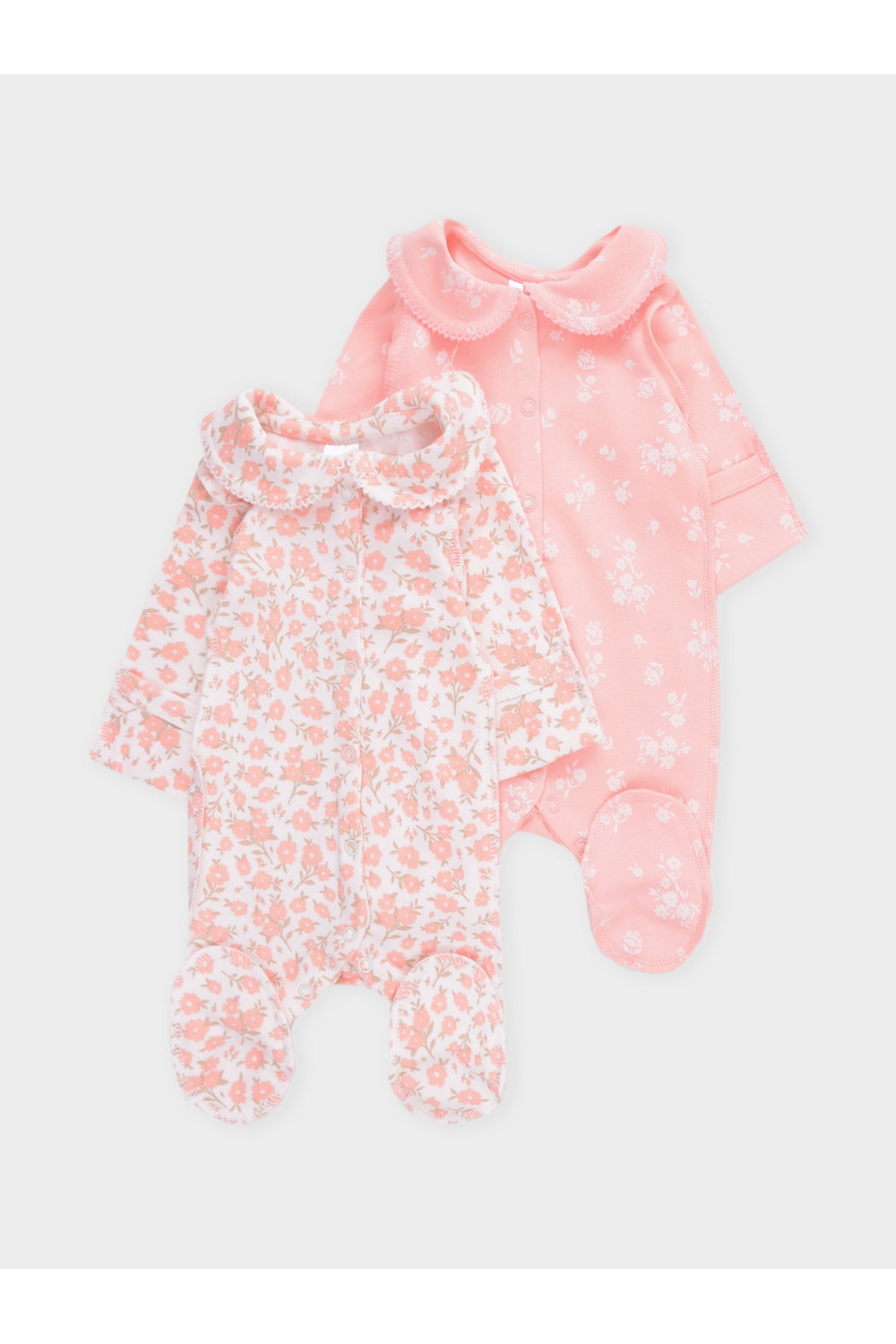 Комбинезоны для новорождённых из мягкого эластичного трикотажа, произведённого из натурального хлопка. В упаковке 2 штуки. Застёгиваются спереди на кнопки. В размере 56 на рукавах предусмотрены антицарапки, швы выполнены наружу. Украшены воротничком. Оригинальная набивка выполнена из стойких гипоаллергенных текстильных красителей. Все трикотажные полотна производятся в соответствии с нормами швейцарского сертификата ЭкоТекс.
