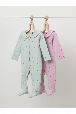 Комбинезоны для новорождённых из мягкого эластичного трикотажа, произведённого из натурального хлопка. В упаковке 2 штуки. Застёгиваются спереди на кнопки. В размере 56 на рукавах предусмотрены антицарапки, швы выполнены наружу. Украшены воротничком. Оригинальная набивка выполнена из стойких гипоаллергенных текстильных красителей. Все трикотажные полотна производятся в соответствии с нормами Швейцарского сертификата ЭкоТекс.