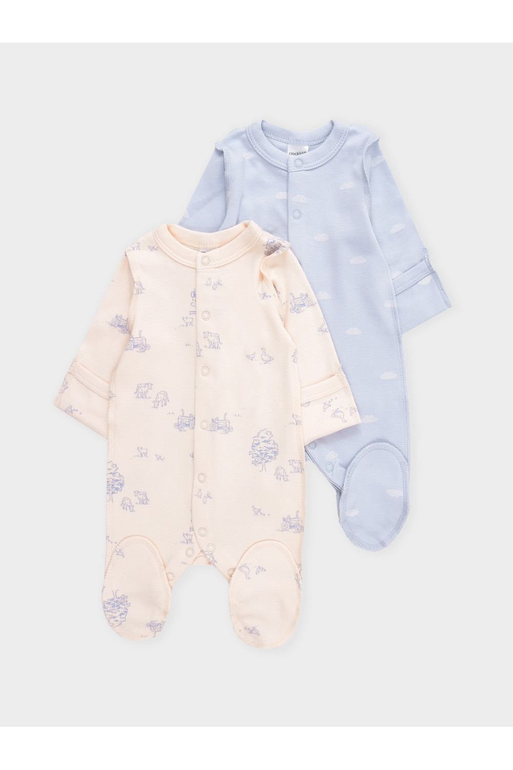 Комбинезоны для новорождённых из мягкого эластичного трикотажа, произведённого из натурального хлопка. В упаковке 2 штуки. Застёгиваются спереди на кнопки. В размере 56 на рукавах предусмотрены антицарапки, швы выполнены наружу. Оригинальная набивка выполнена из стойких гипоаллергенных текстильных красителей. Все трикотажные полотна производятся в соответствии с нормами швейцарского сертификата ЭкоТекс.