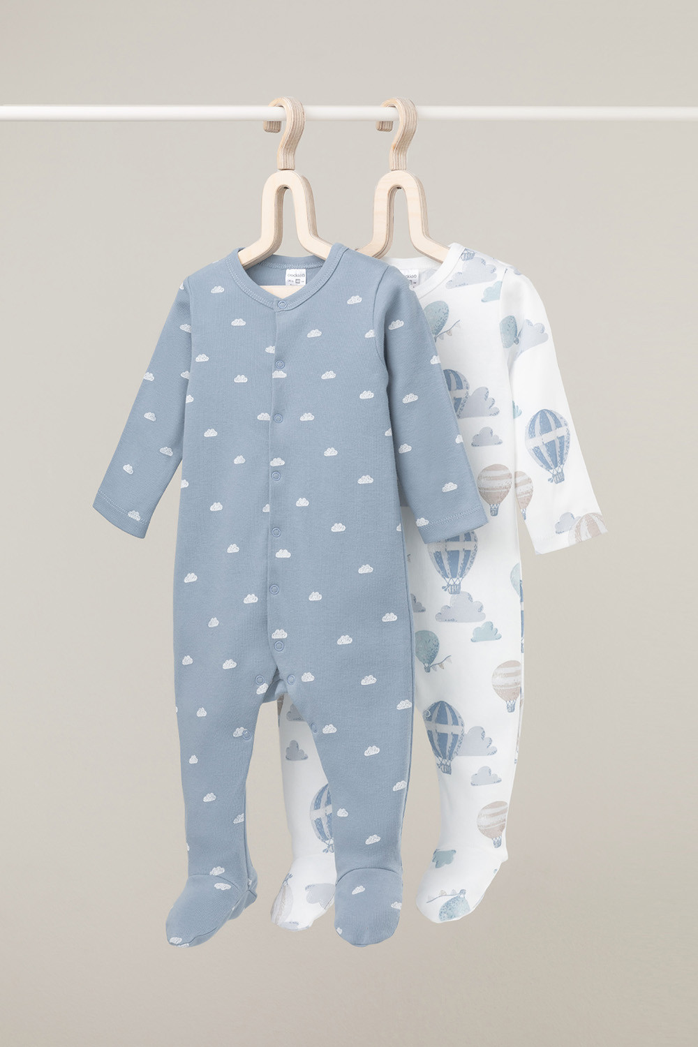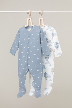 Комбинезоны для новорождённых из мягкого эластичного трикотажа, произведённого из натурального хлопка. В упаковке 2 штуки. Застёгиваются спереди на кнопки. В размере 56 на рукавах предусмотрены антицарапки, швы выполнены наружу. Оригинальная набивка выполнена из стойких гипоаллергенных текстильных красителей. Все трикотажные полотна производятся в соответствии с нормами Швейцарского сертификата ЭкоТекс.