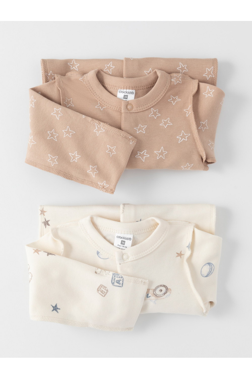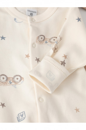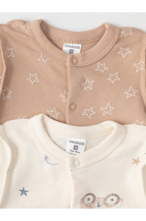 Комбинезоны для новорождённых из мягкого эластичного трикотажа, произведённого из натурального хлопка. В упаковке 2 штуки. Застёгиваются спереди на кнопки. В размере 56 на рукавах предусмотрены антицарапки, швы выполнены наружу. Оригинальная набивка выполнена из стойких гипоаллергенных текстильных красителей. Все трикотажные полотна производятся в соответствии с нормами швейцарского сертификата ЭкоТекс.