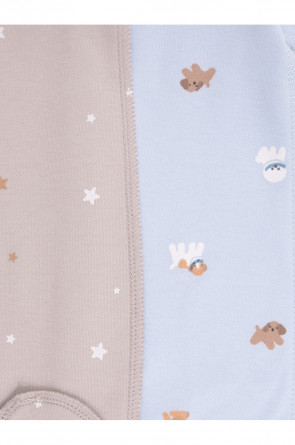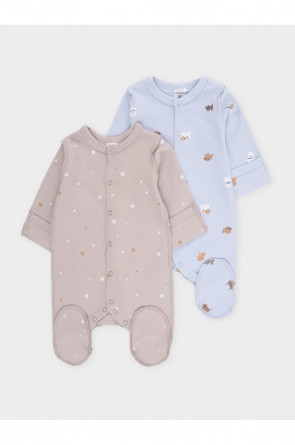 Комбинезоны для новорождённых из мягкого эластичного трикотажа, произведённого из натурального хлопка. В упаковке 2 штуки. Застёгиваются спереди на кнопки. В размере 56 на рукавах предусмотрены антицарапки, швы выполнены наружу. Оригинальная набивка выполнена из стойких гипоаллергенных текстильных красителей. Все трикотажные полотна производятся в соответствии с нормами Швейцарского сертификата ЭкоТекс.