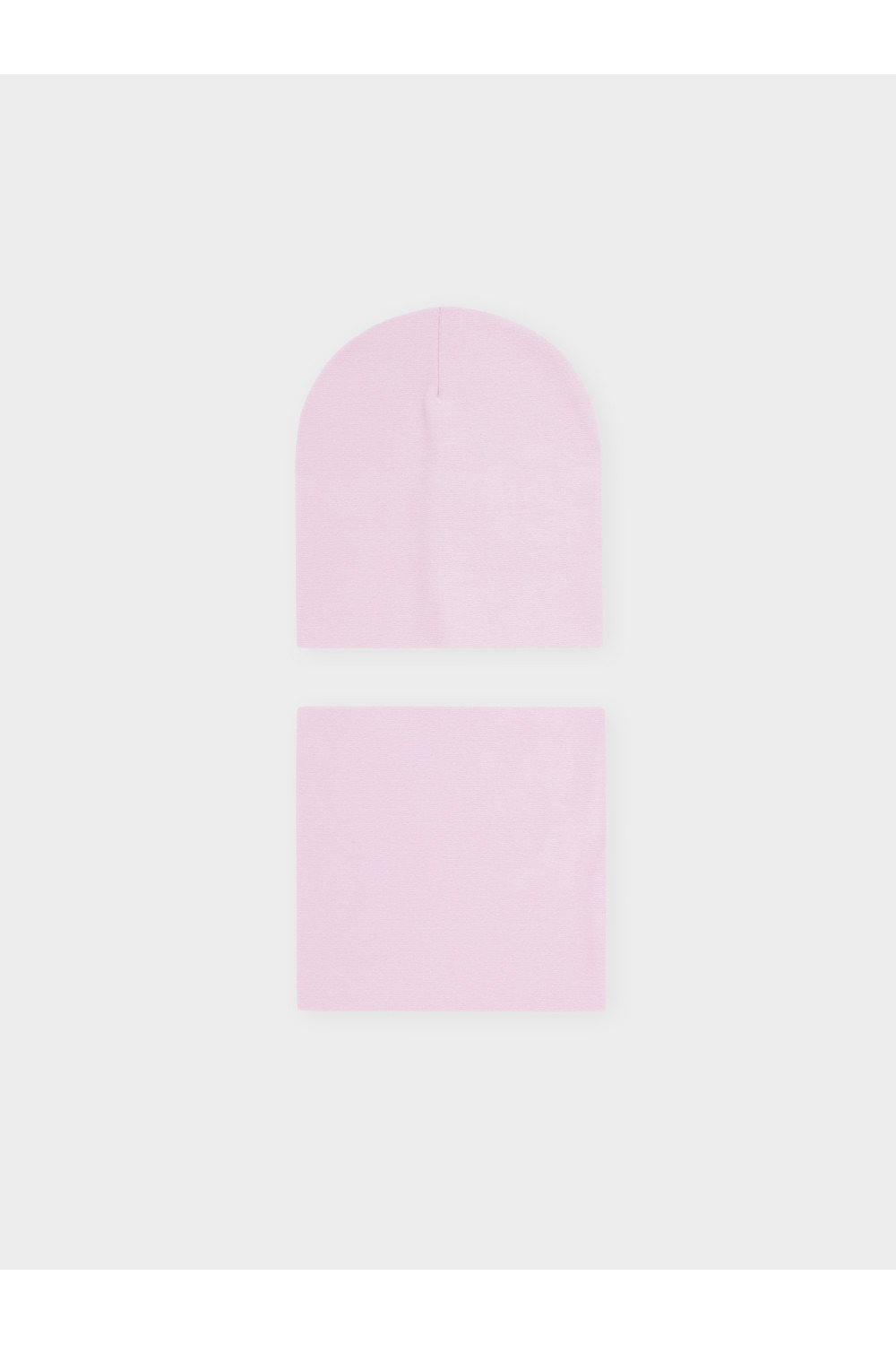 Комплект детский: шапка и снуд из хлопкового трикотажа с добавлением эластана. Изделия хорошо тянутся, после многократных стирок сохраняют цвет и форму.