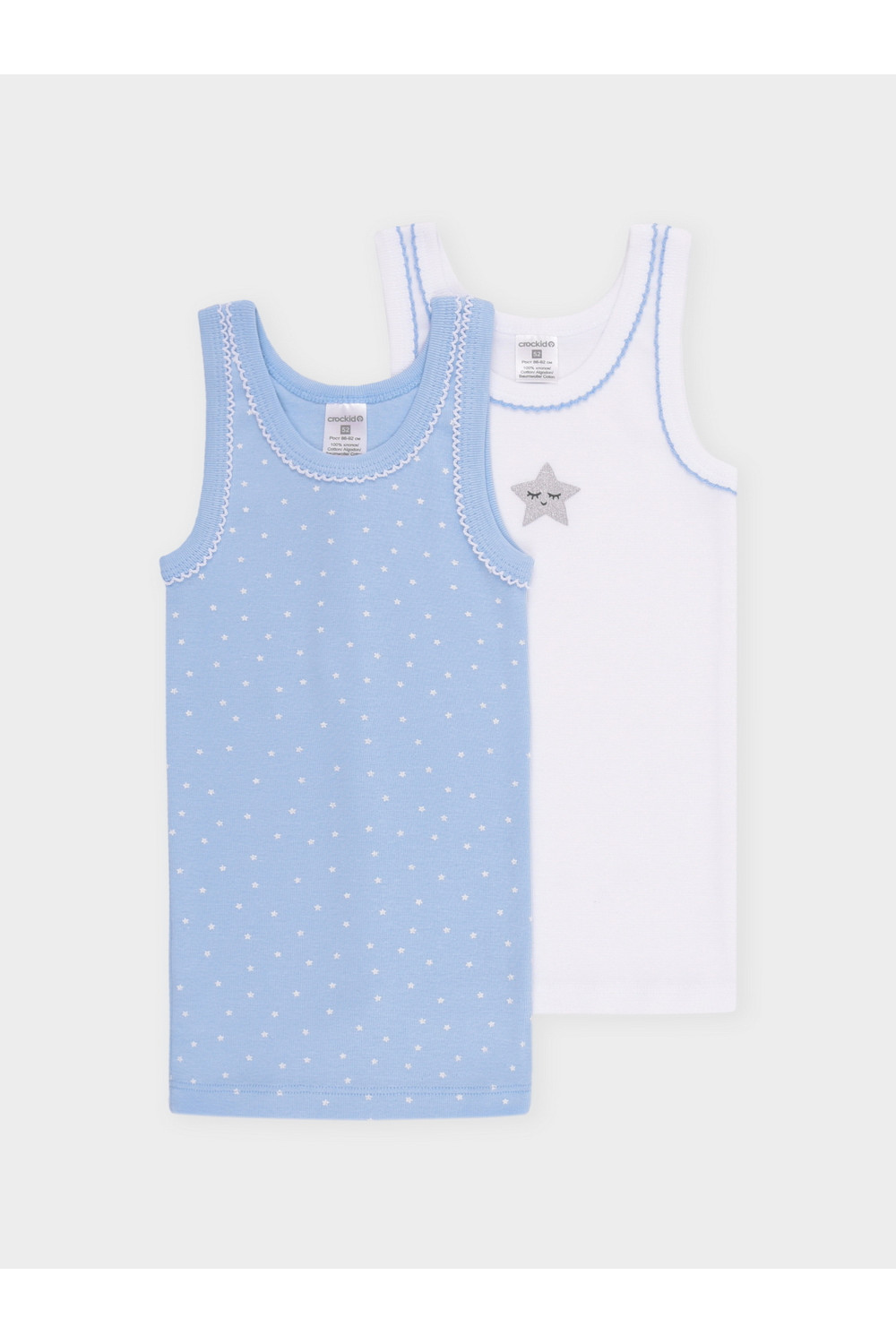 Трикотажные майки в комплекте 2 шт на лямках из натурального хлопка. Оригинальные набивка и принт выполнены из стойких, гипоаллергенных текстильных красителей. Изделие сохраняет цвет и форму после многократных стирок. Все трикотажные полотна производятся в соответствии с нормами Швейцарского сертификата ЭкоТекс.