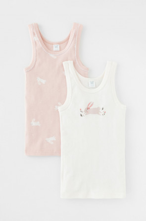 Трикотажные майки в комплекте 2 шт на лямках из натурального хлопка. Оригинальные набивка и принт выполнены из стойких, гипоаллергенных текстильных красителей. Изделие сохраняет цвет и форму после многократных стирок. Все трикотажные полотна производятся в соответствии с нормами Швейцарского сертификата ЭкоТекс.