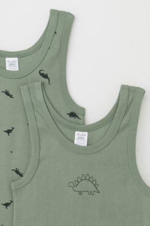 Трикотажные майки в комплекте 2 шт на лямках из натурального хлопка. Оригинальные принт и набивка выполнены из стойких, гипоаллергенных текстильных красителей. Изделие сохраняет цвет и форму после многократных стирок. Все трикотажные полотна производятся в соответствии с нормами Швейцарского сертификата ЭкоТекс.