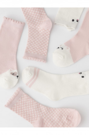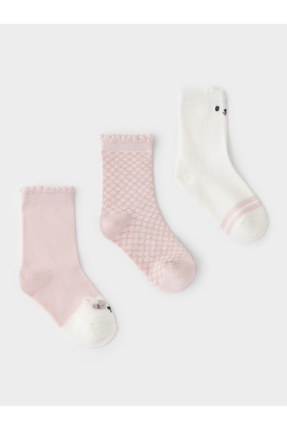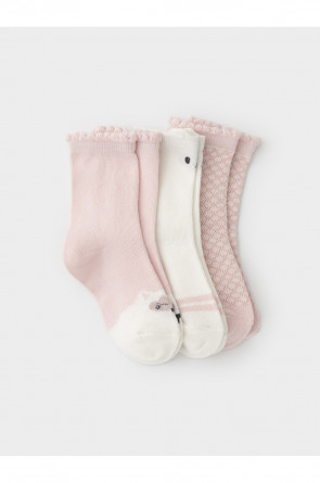 Носки с формованной пяткой и эластичной резинкой по краю. Украшены рисунком и объёмными элементами. В комплекте 3 пары. Изделия сохраняют форму и стойкий цвет после многочисленных стирок.