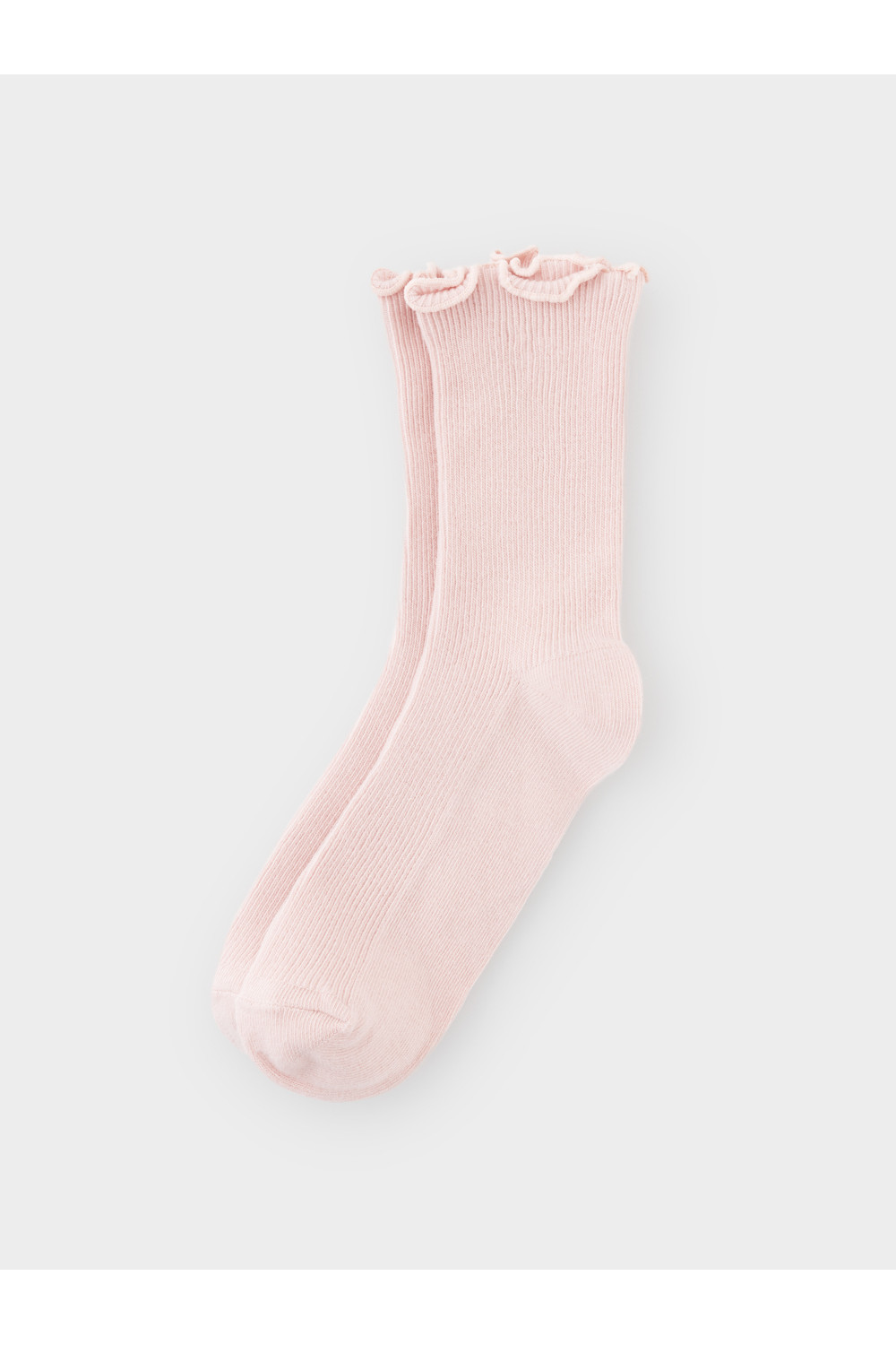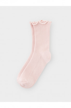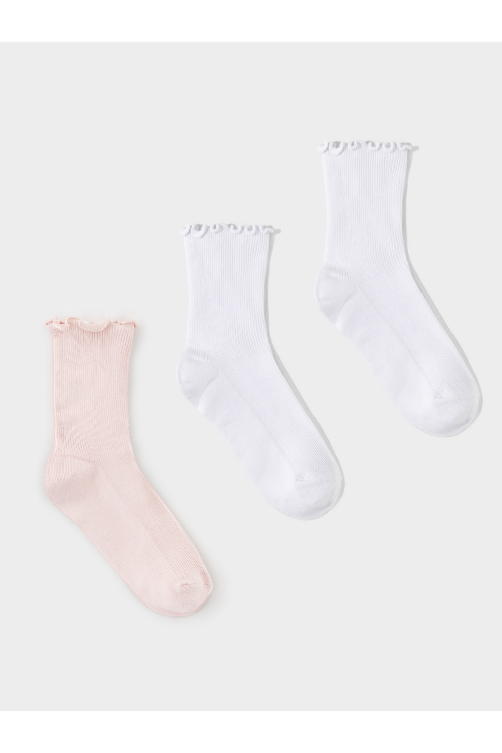 Комплект однотонных длинных носков с рюшей по краю верха для девочки. В комплекте 3 пары.