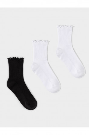 Комплект однотонных длинных носков с рюшей по краю верха для девочки. В комплекте 3 пары.