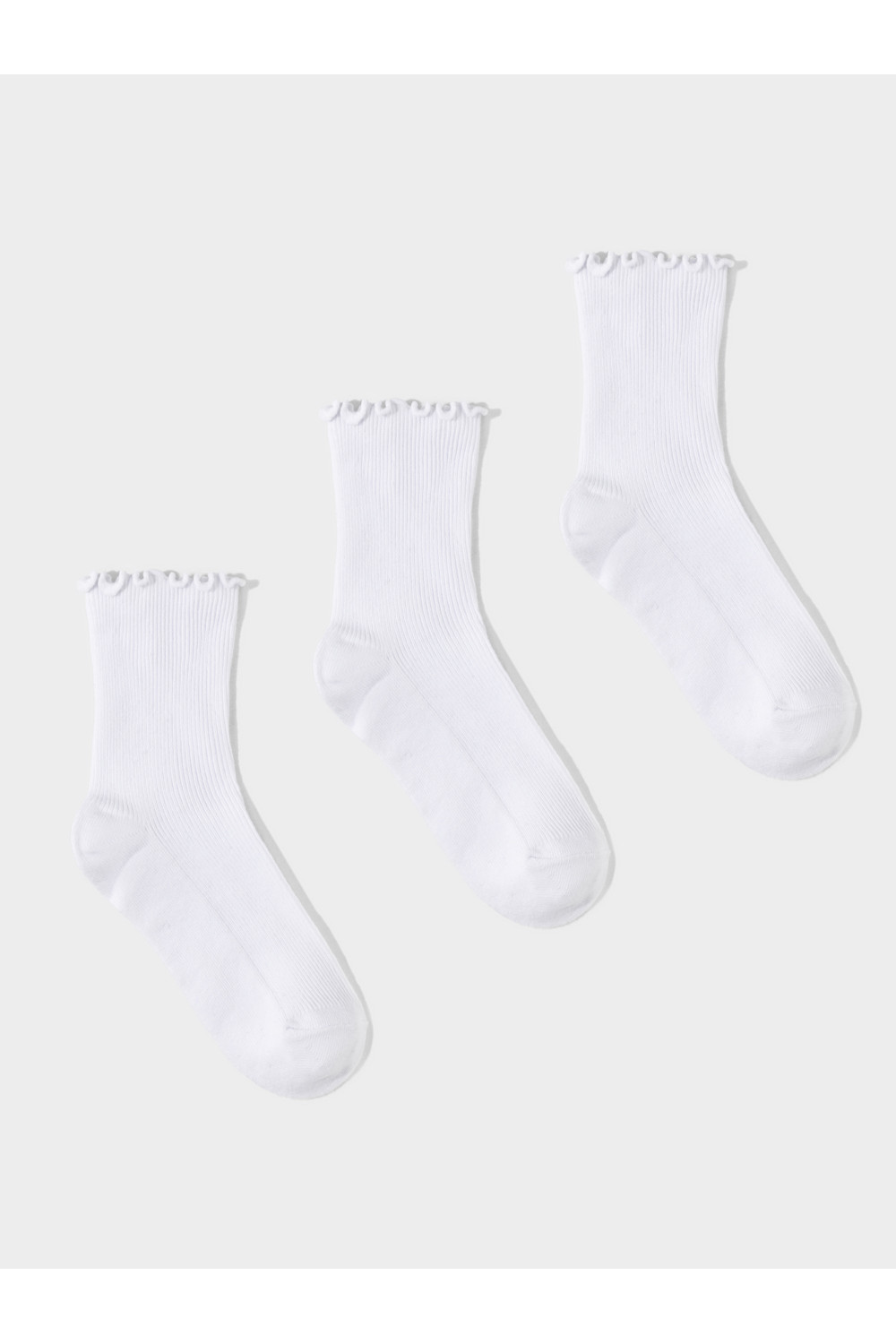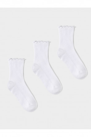 Комплект однотонных трикотажных носков с рюшей по краю верха для девочки. В комплекте 3 пары.
