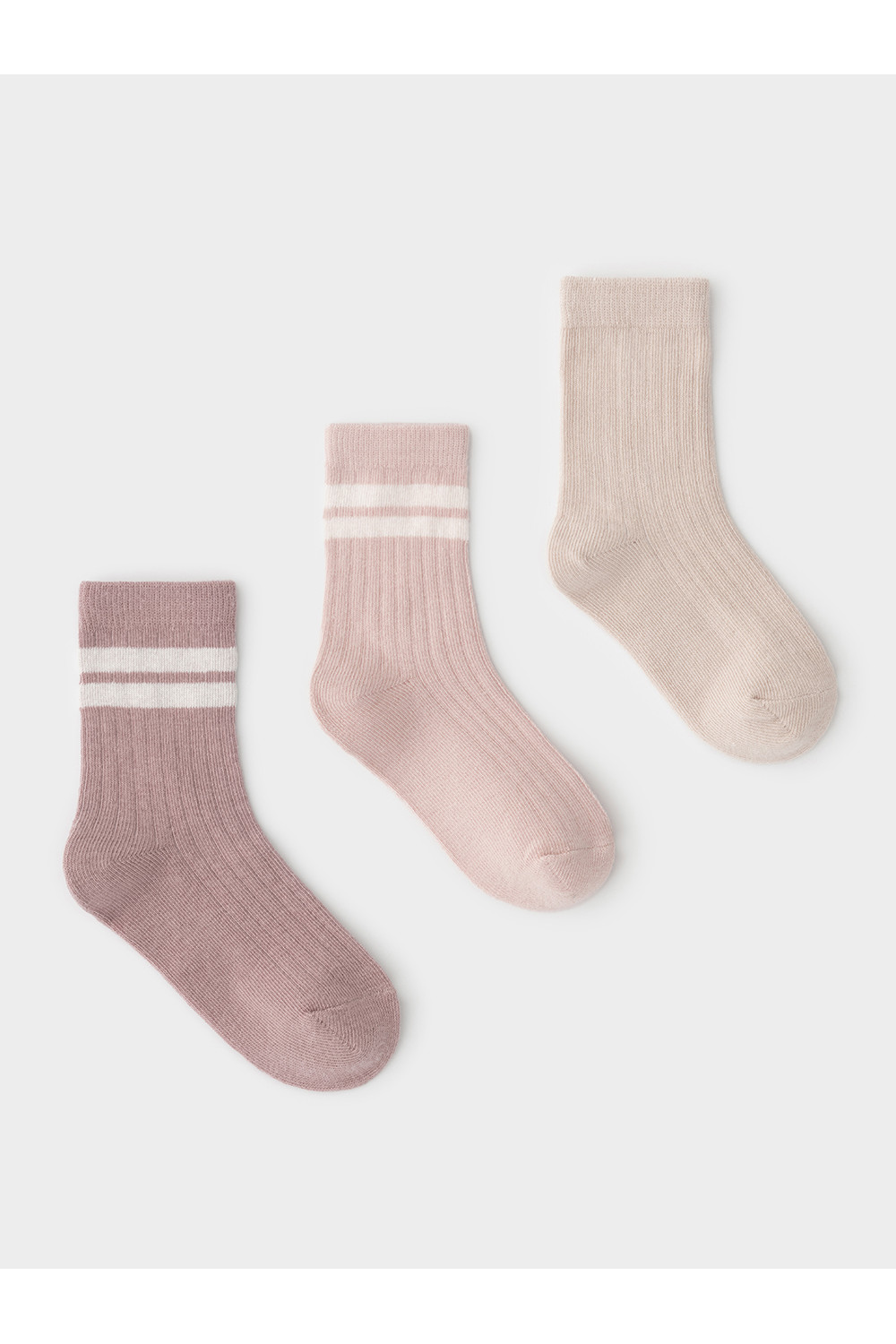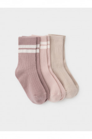 Носки с формованной пяткой и эластичной резинкой по краю. Украшены рисунком в полоску. В комплекте 3 пары. Изделия сохраняют форму и стойкий цвет после многочисленных стирок.