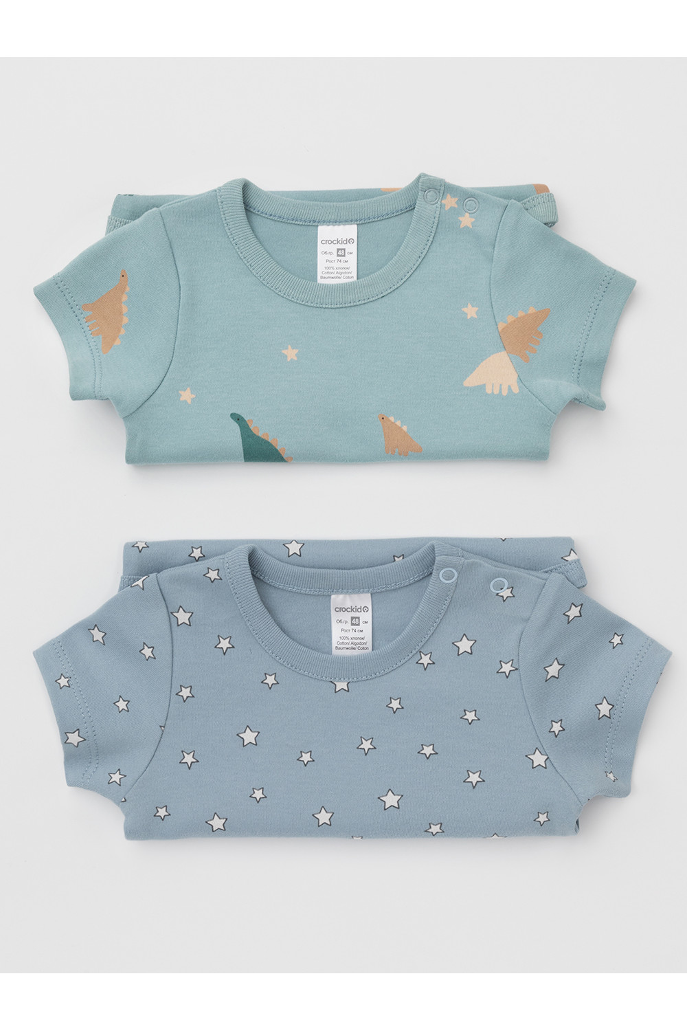 Боди для новорождённых из мягкого эластичного трикотажа, произведённого из натурального хлопка. В упаковке 2 штуки. Застёгиваются на кнопки на плече и по низу изделий. Оригинальная набивка выполнена из стойких гипоаллергенных текстильных красителей. Все трикотажные полотна производятся в соответствии с нормами швейцарского сертификата ЭкоТекс.