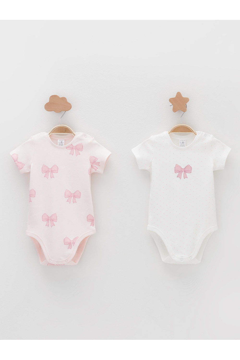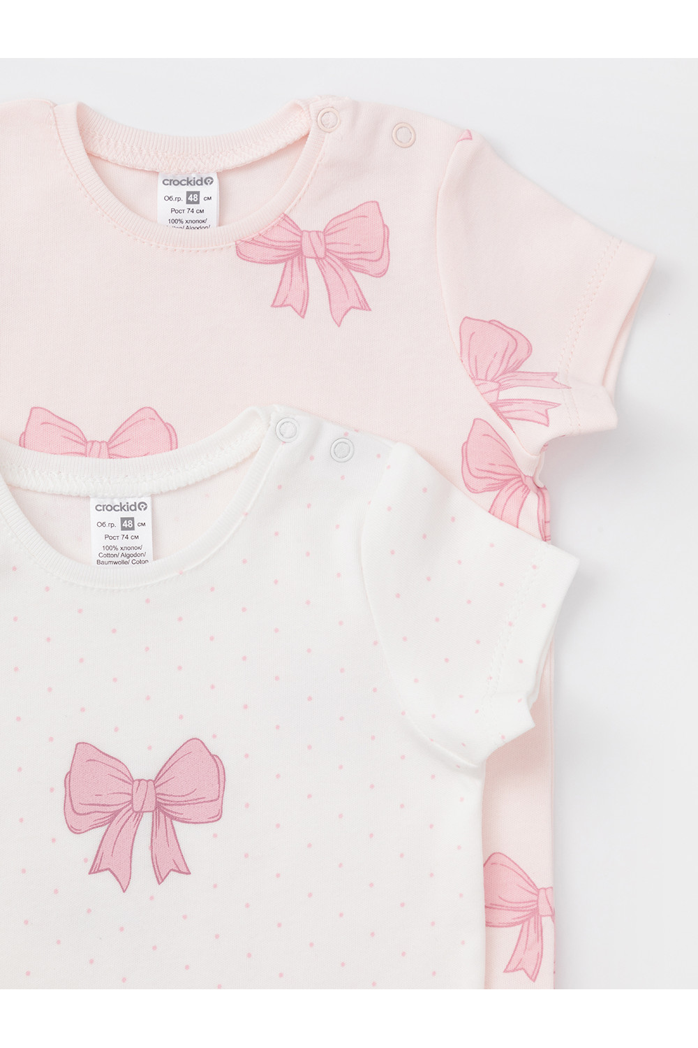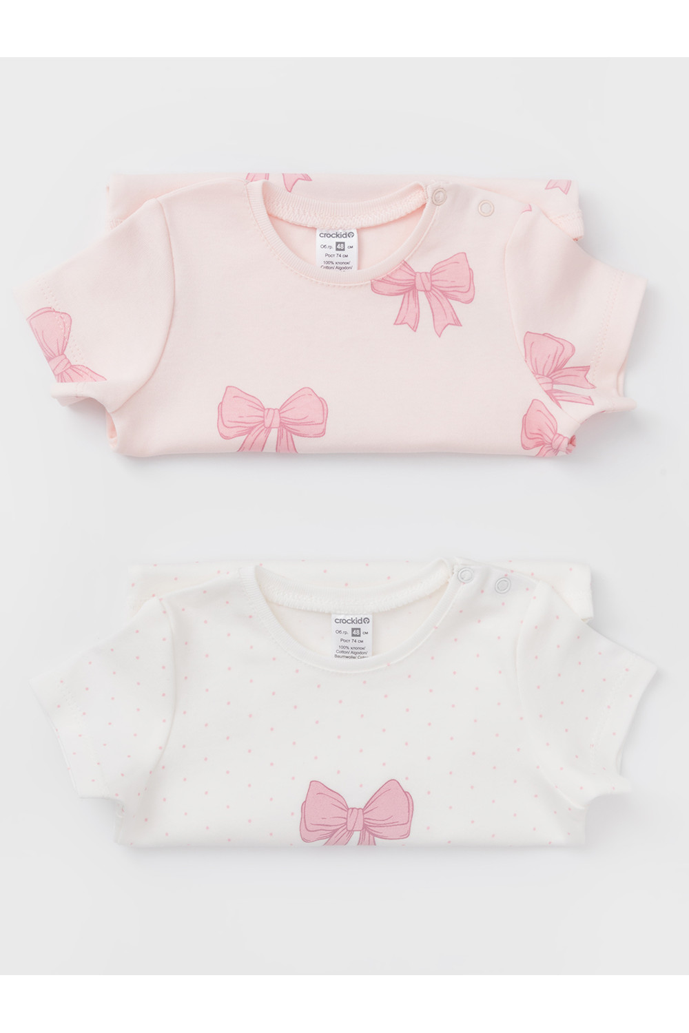 Боди для новорождённых из мягкого эластичного трикотажа, произведённого из натурального хлопка. В упаковке 2 штуки. Застёгиваются на кнопки на плече и по низу изделий. Оригинальная набивка и принт выполнены из стойких гипоаллергенных текстильных красителей. Все трикотажные полотна производятся в соответствии с нормами швейцарского сертификата ЭкоТекс.