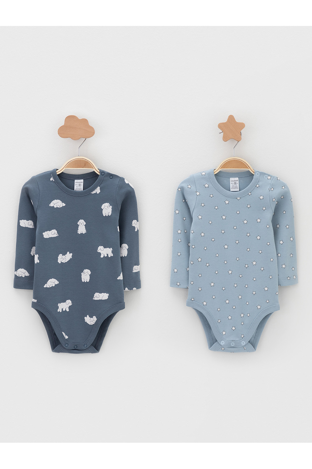 Боди для новорождённых из мягкого эластичного трикотажа, произведённого из натурального хлопка. В упаковке 2 штуки. Застёгиваются на кнопки на плече и по низу изделий. Оригинальная набивка и принт выполнены из стойких гипоаллергенных текстильных красителей. Все трикотажные полотна производятся в соответствии с нормами швейцарского сертификата ЭкоТекс.