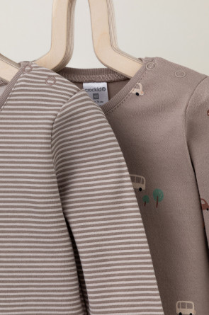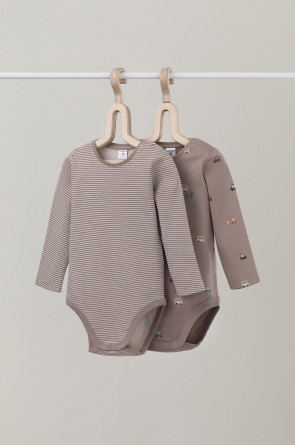 Боди для новорождённых из мягкого эластичного трикотажа, произведённого из натурального хлопка. В упаковке 2 штуки. Застёгиваются на кнопки на плече и по низу изделий. Оригинальная набивка выполнена из стойких гипоаллергенных текстильных красителей. Все трикотажные полотна производятся в соответствии с нормами Швейцарского сертификата ЭкоТекс.