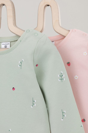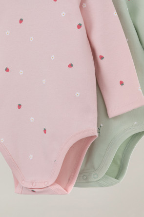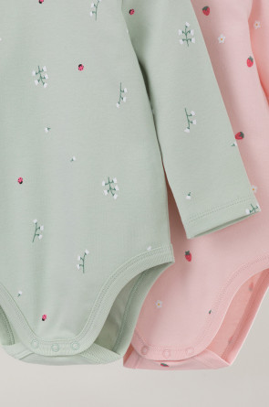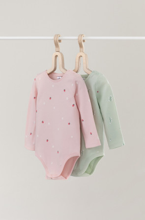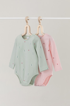 Боди для новорождённых из мягкого эластичного трикотажа, произведённого из натурального хлопка. В упаковке 2 штуки. Застёгиваются на кнопки на плече и по низу изделий. Оригинальная набивка выполнена из стойких гипоаллергенных текстильных красителей. Все трикотажные полотна производятся в соответствии с нормами Швейцарского сертификата ЭкоТекс.