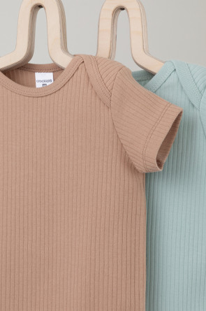 Боди для новорождённых из мягкого эластичного трикотажа, произведённого из натурального хлопка. В упаковке 2 штуки. Застёгиваются на кнопки по низу изделий. Все трикотажные полотна производятся в соответствии с нормами Швейцарского сертификата ЭкоТекс.