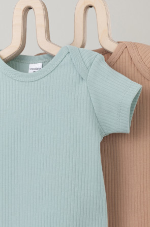 Боди для новорождённых из мягкого эластичного трикотажа, произведённого из натурального хлопка. В упаковке 2 штуки. Застёгиваются на кнопки по низу изделий. Все трикотажные полотна производятся в соответствии с нормами Швейцарского сертификата ЭкоТекс.