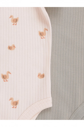 Боди для новорождённых из мягкого эластичного трикотажа, произведённого из натурального хлопка. В упаковке 2 штуки. Застёгиваются на кнопки по низу изделий. Все трикотажные полотна производятся в соответствии с нормами швейцарского сертификата ЭкоТекс.