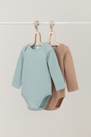 Боди для новорождённых из мягкого эластичного трикотажа, произведённого из натурального хлопка. В упаковке 2 штуки. Застёгиваются на кнопки по низу изделий. Все трикотажные полотна производятся в соответствии с нормами Швейцарского сертификата ЭкоТекс.