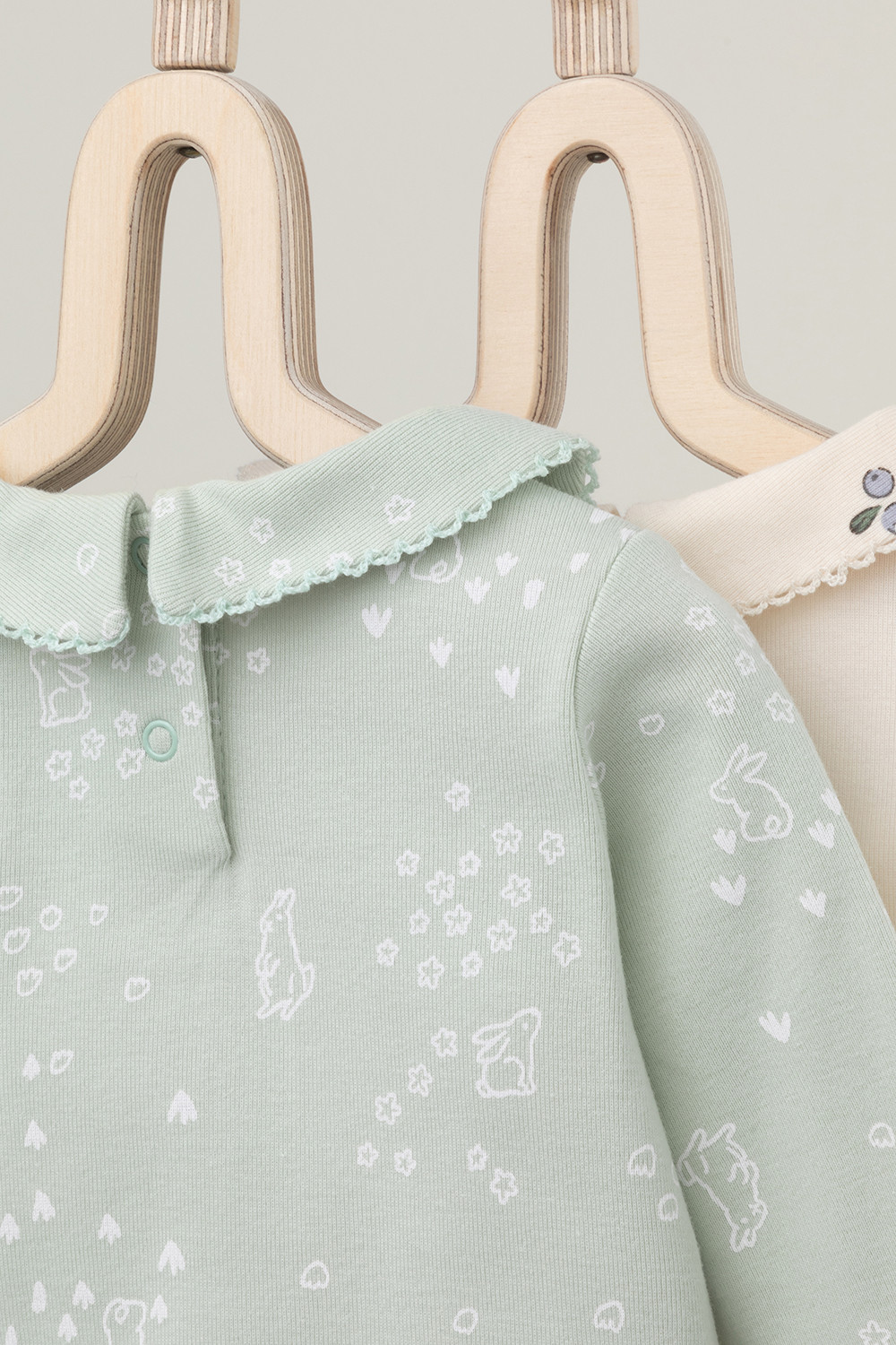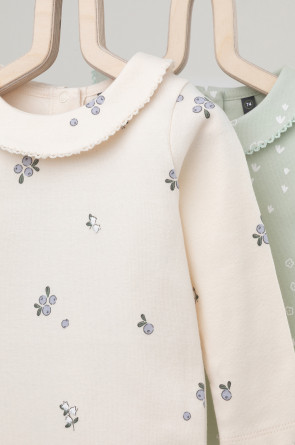 Боди для новорождённых из мягкого эластичного трикотажа, произведённого из натурального хлопка. В упаковке 2 штуки. Застёгиваются на кнопки по низу изделий и на спинке. Оригинальная набивка выполнена из стойких гипоаллергенных текстильных красителей. Все трикотажные полотна производятся в соответствии с нормами Швейцарского сертификата ЭкоТекс.