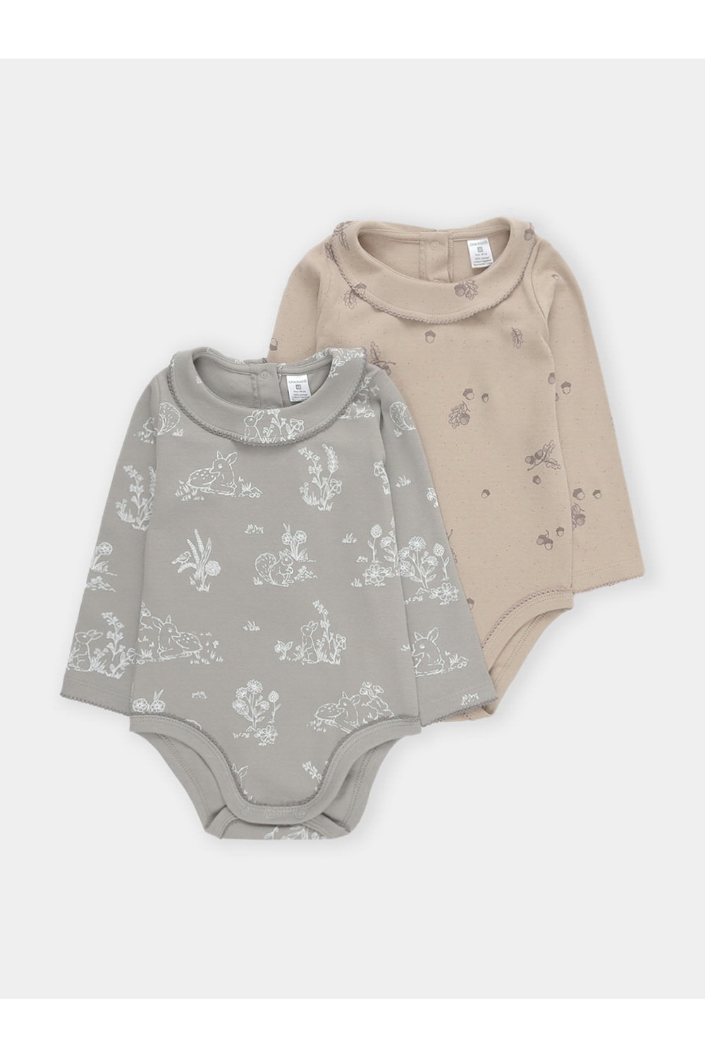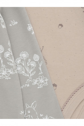 Боди для новорождённых из мягкого эластичного трикотажа, произведённого из натурального хлопка. В упаковке 2 штуки. Застёгиваются на кнопки по низу изделий и на спинке. Оригинальная набивка выполнена из стойких гипоаллергенных текстильных красителей. Все трикотажные полотна производятся в соответствии с нормами швейцарского сертификата ЭкоТекс.
