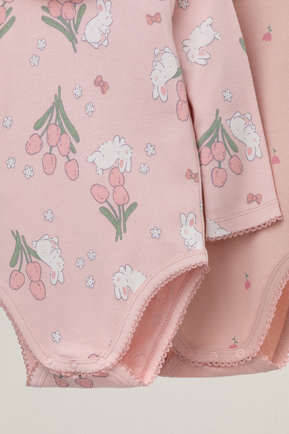 Боди для новорождённых из мягкого эластичного трикотажа, произведённого из натурального хлопка. В упаковке 2 штуки. Застёгиваются на кнопки по низу изделий и на спинке. Оригинальная набивка выполнена из стойких гипоаллергенных текстильных красителей. Все трикотажные полотна производятся в соответствии с нормами Швейцарского сертификата ЭкоТекс.