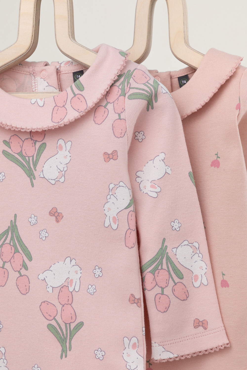 Боди для новорождённых из мягкого эластичного трикотажа, произведённого из натурального хлопка. В упаковке 2 штуки. Застёгиваются на кнопки по низу изделий и на спинке. Оригинальная набивка выполнена из стойких гипоаллергенных текстильных красителей. Все трикотажные полотна производятся в соответствии с нормами Швейцарского сертификата ЭкоТекс.