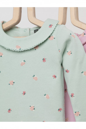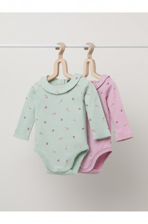 Боди для новорождённых из мягкого эластичного трикотажа, произведённого из натурального хлопка. В упаковке 2 штуки. Застёгиваются на кнопки по низу изделий и на спинке. Оригинальная набивка выполнена из стойких гипоаллергенных текстильных красителей. Все трикотажные полотна производятся в соответствии с нормами Швейцарского сертификата ЭкоТекс.
