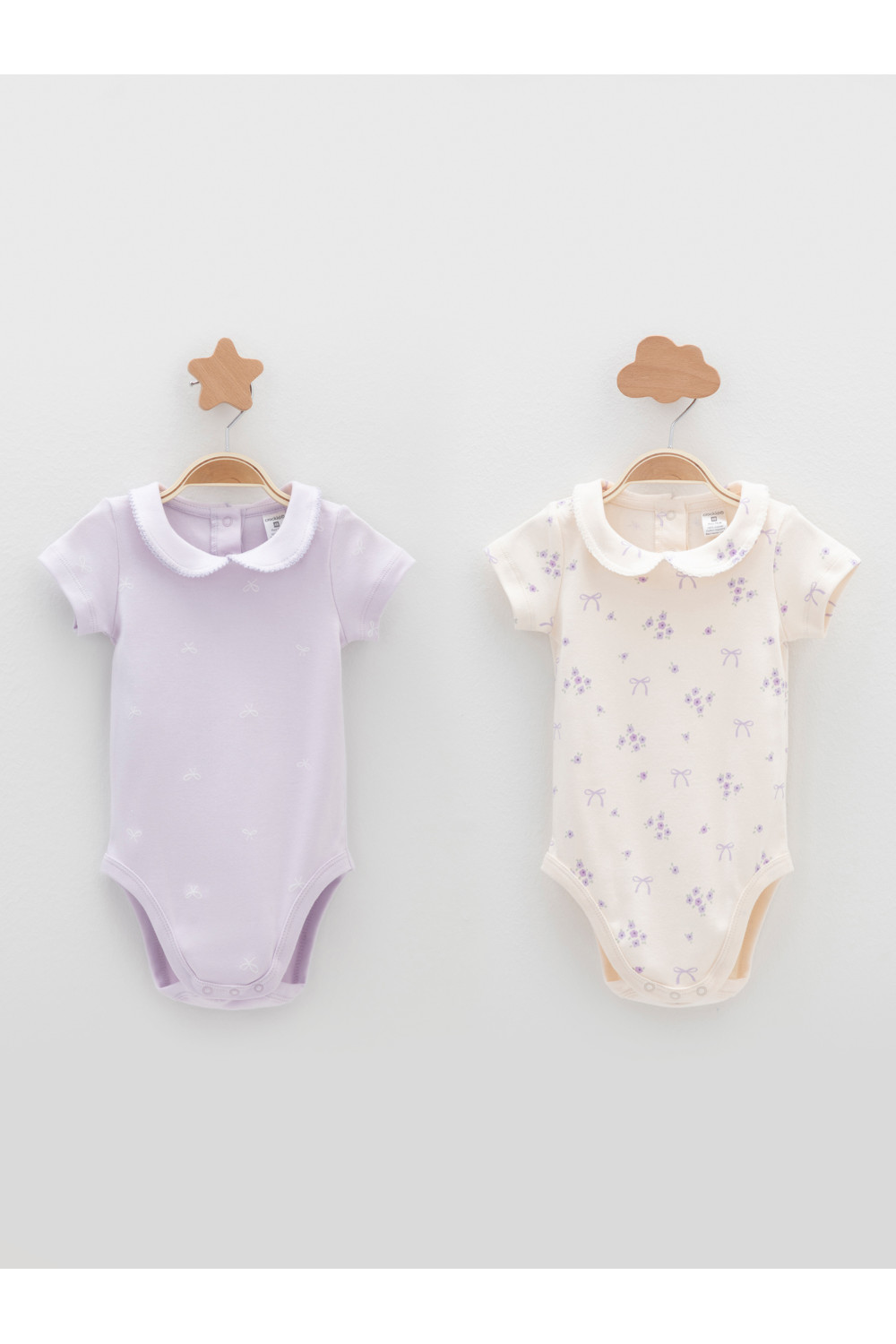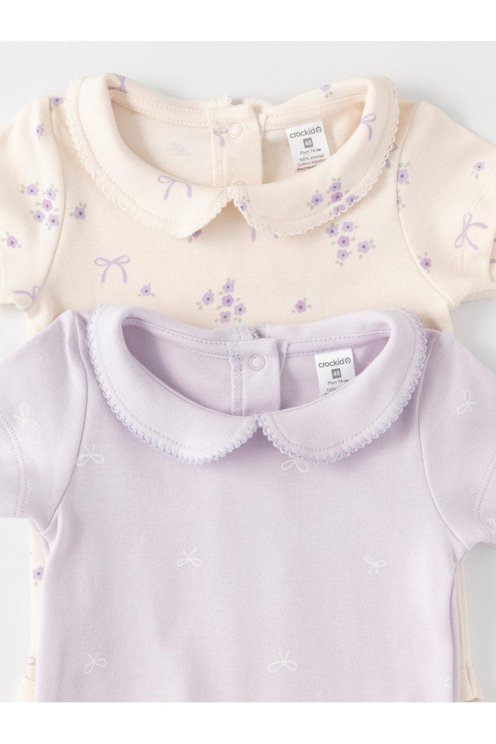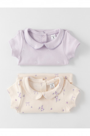 Боди для новорождённых из мягкого эластичного трикотажа, произведённого из натурального хлопка. В упаковке 2 шт. Застёгиваются на кнопки по низу изделий и на спинке. Оригинальная набивка выполнена из стойких гипоаллергенных текстильных красителей. Все трикотажные полотна производятся в соответствии с нормами швейцарского сертификата ЭкоТекс.